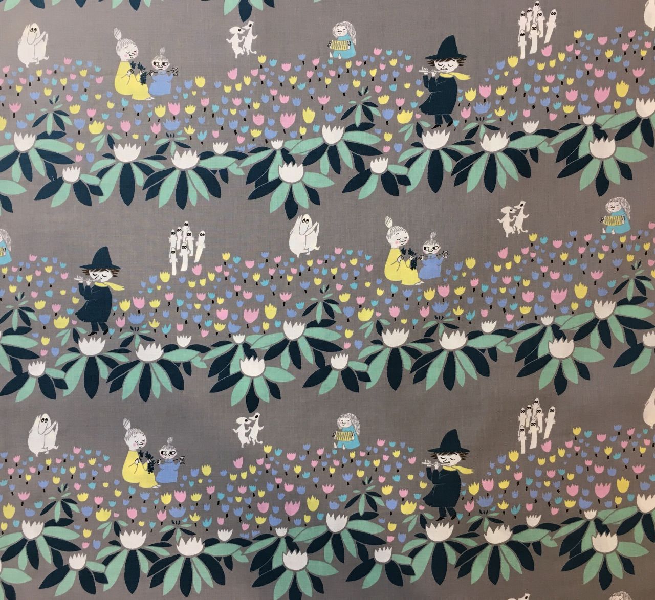 ムーミン谷の仲間たちが生地の中で