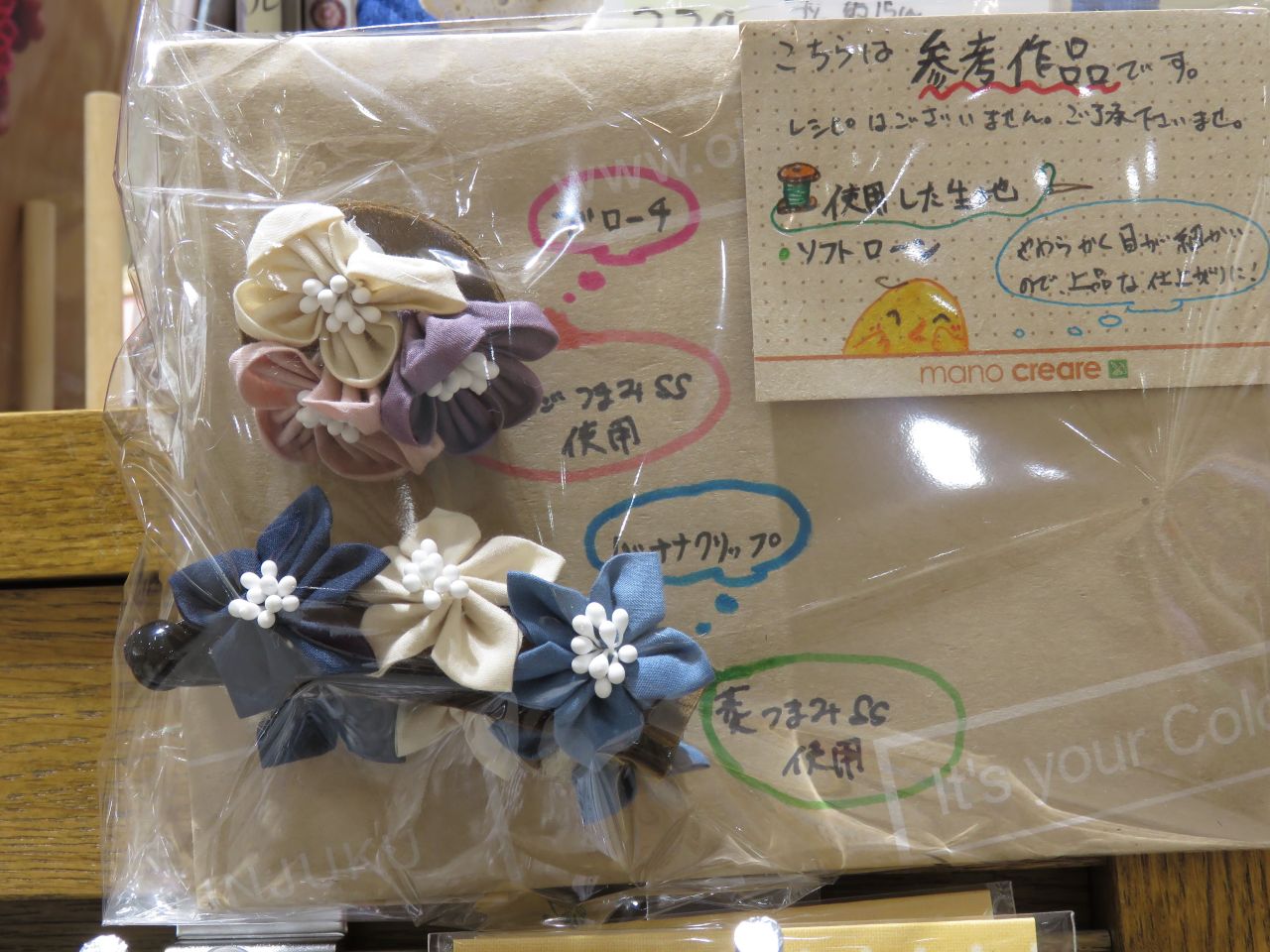 ブローチには丸ひだつまみSS、バナナクリップには菱つまみSSを使用しました。