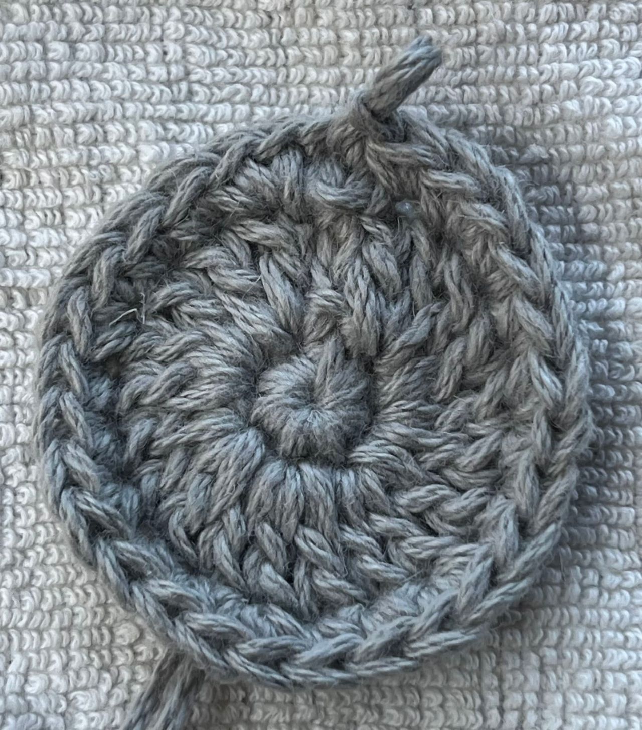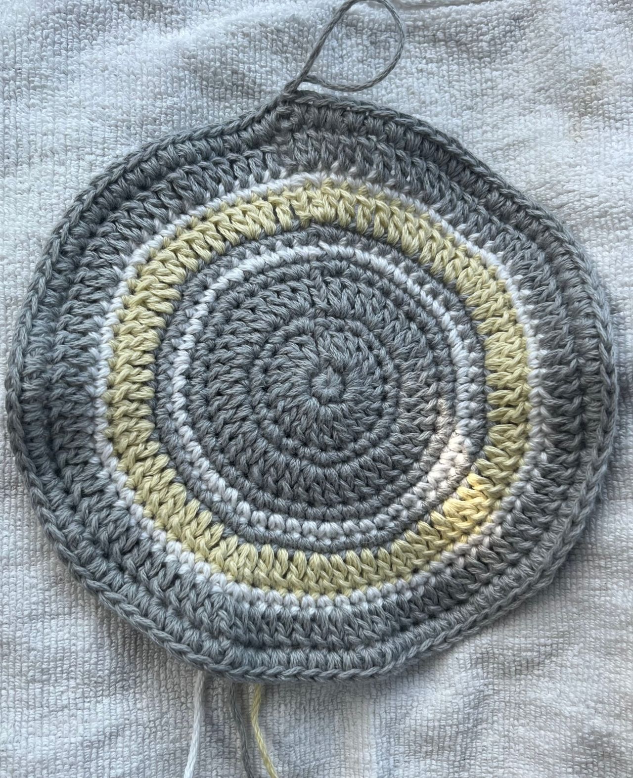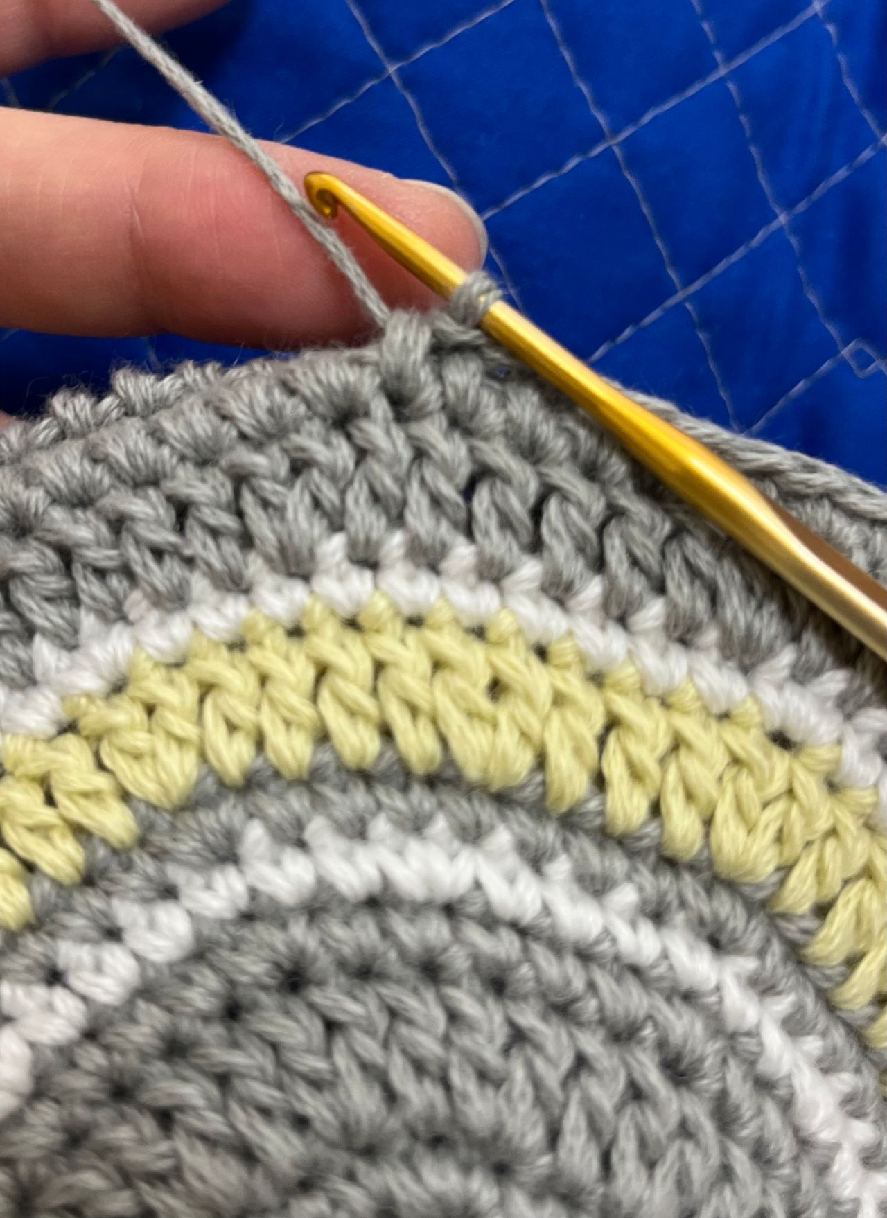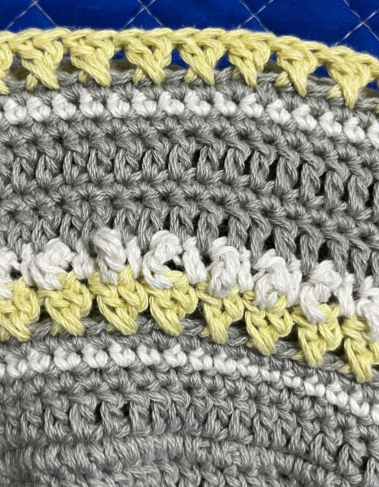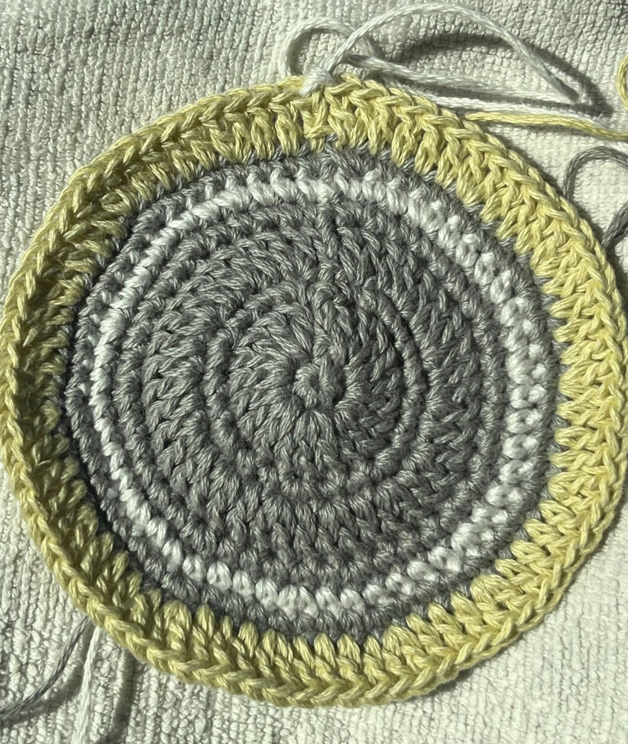 トップとクラウンの間に表側から糸をつけて1周引き抜き編みをして形を整えます