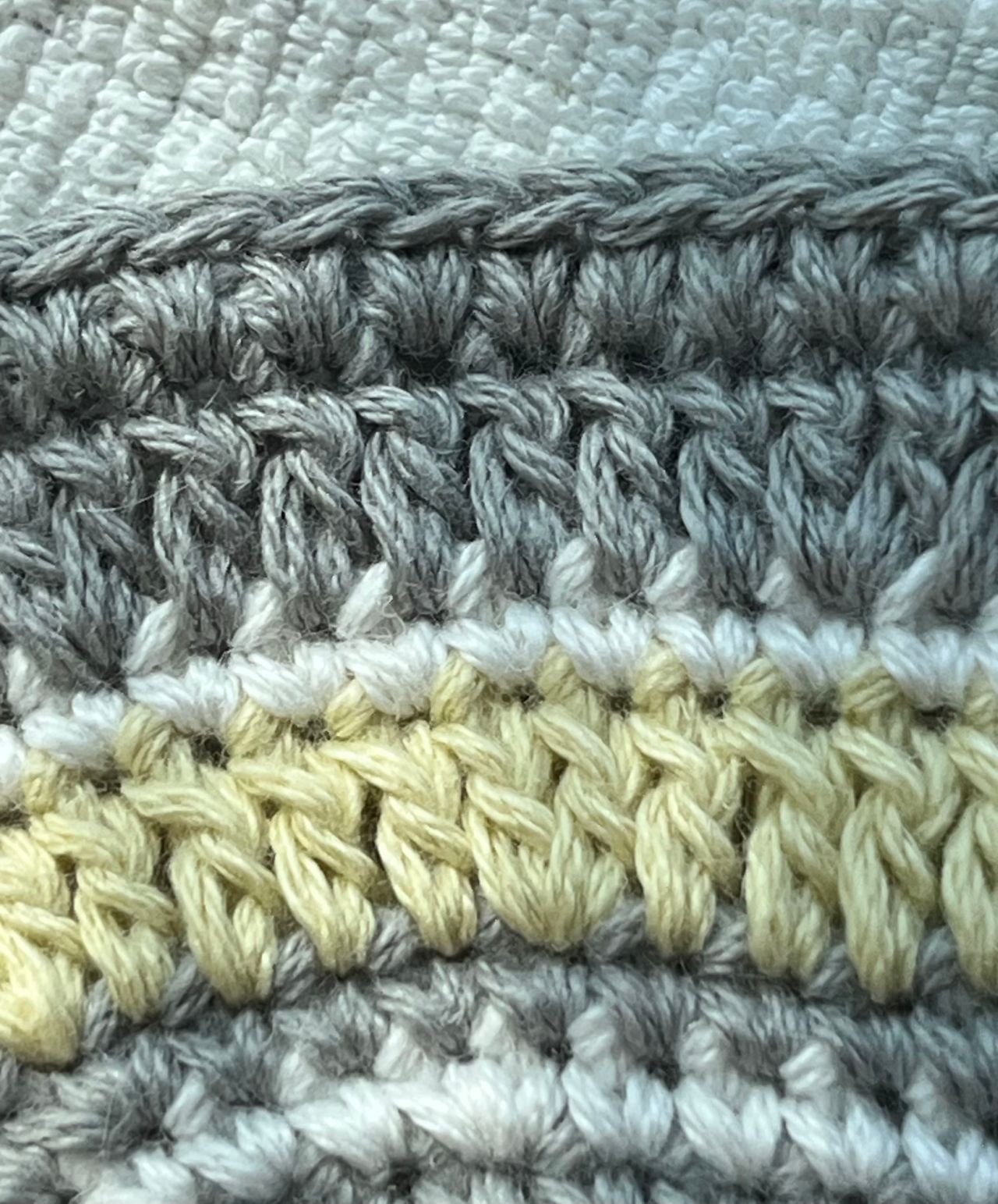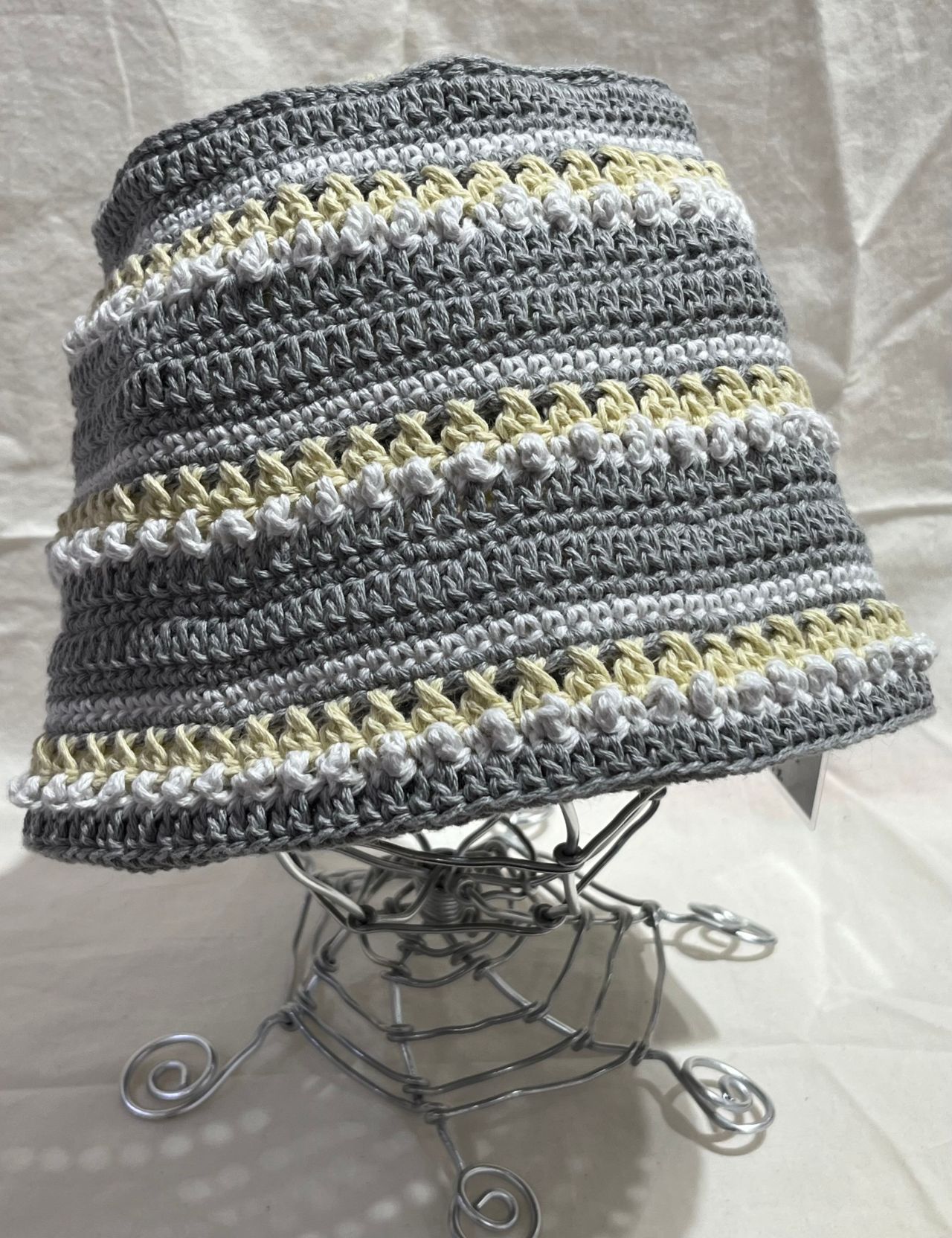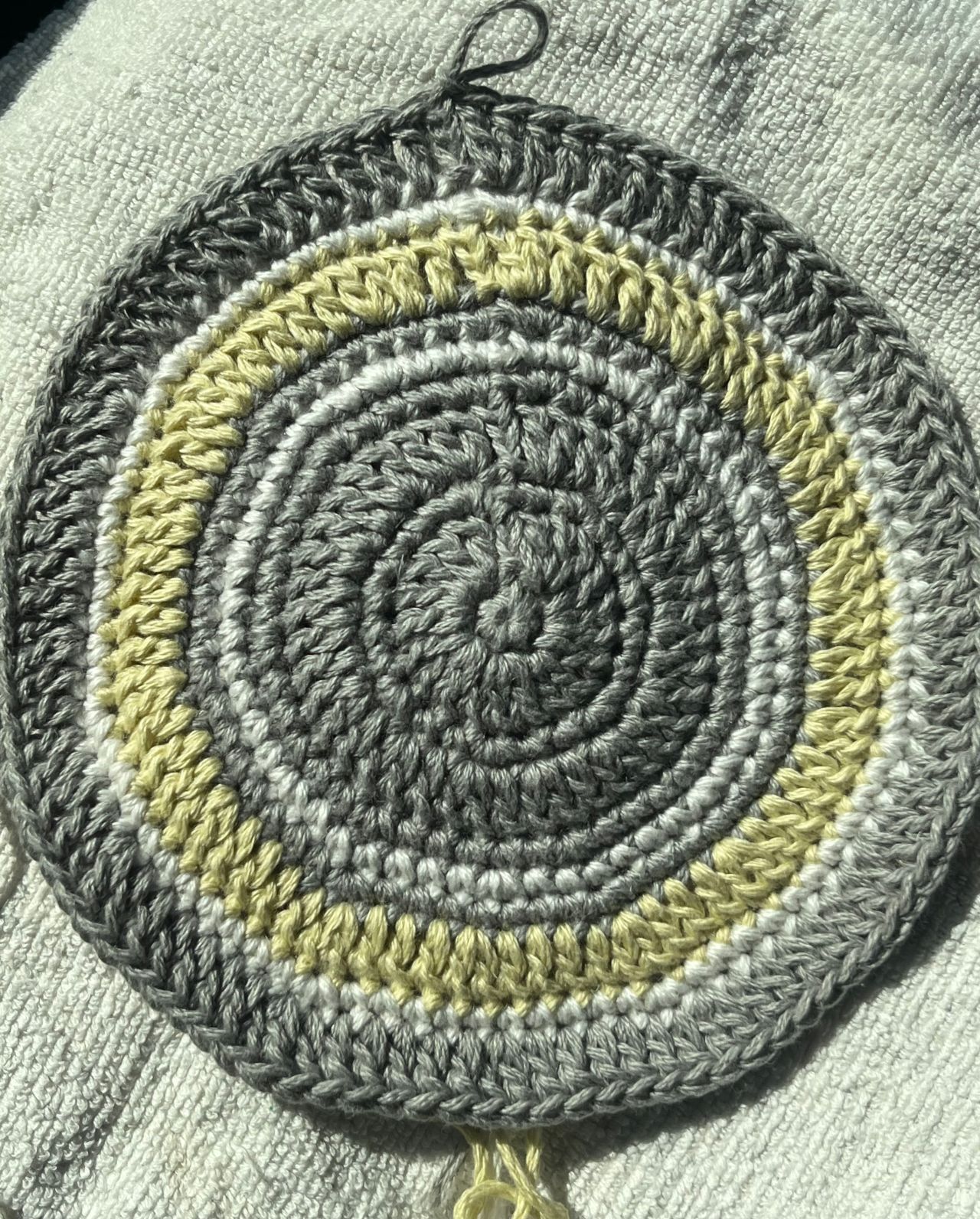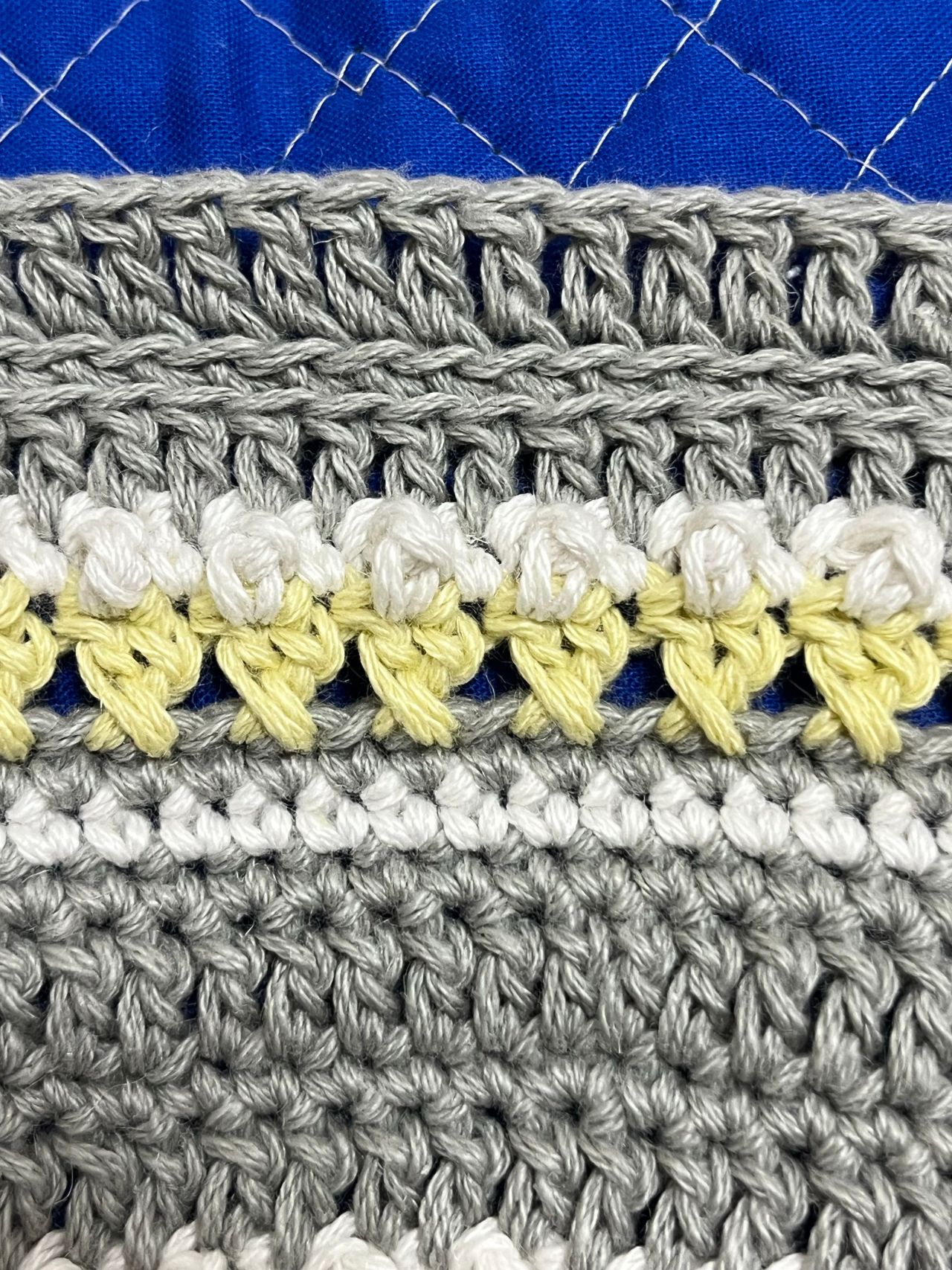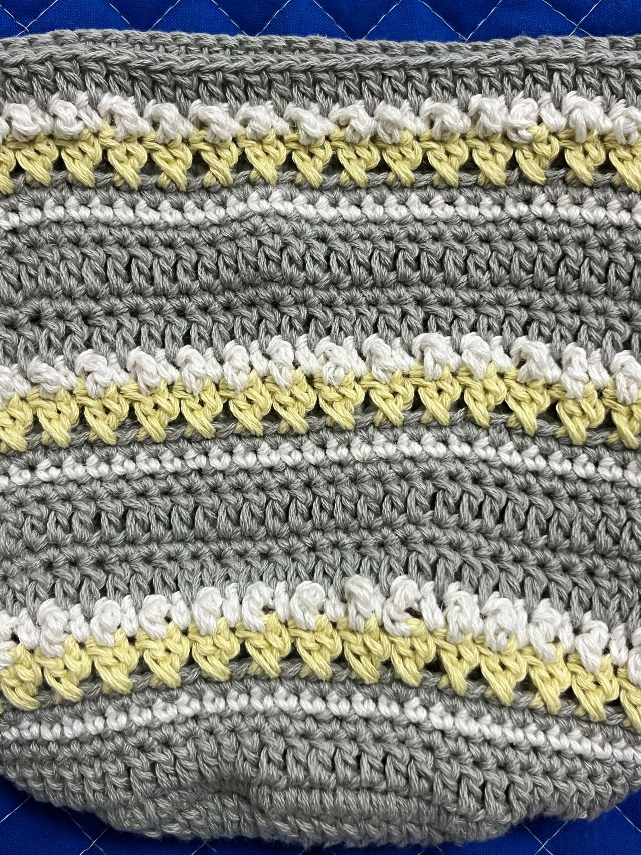 トップとクラウンの間に表側から糸をつけて1周引き抜き編みをして形を整えます