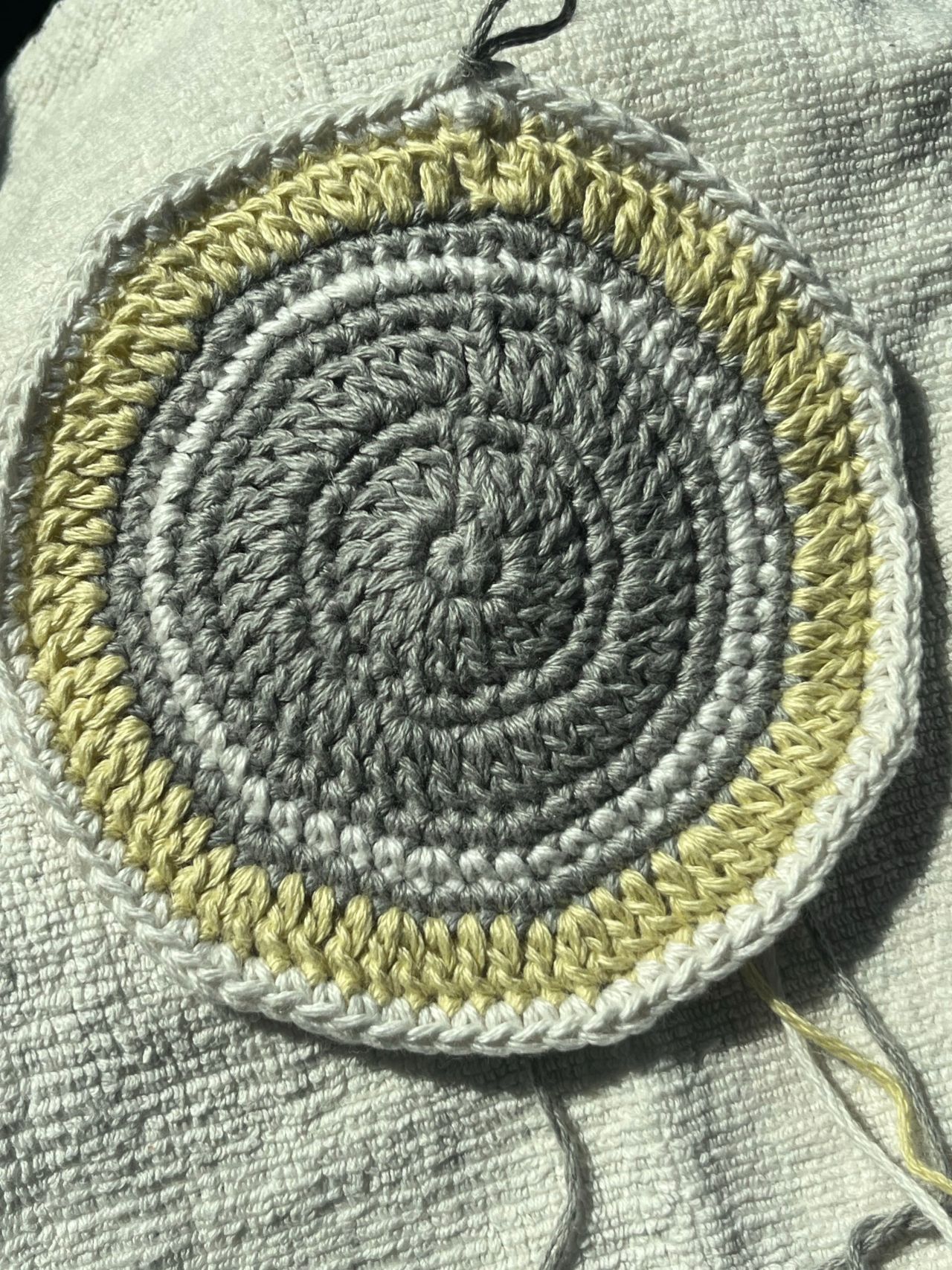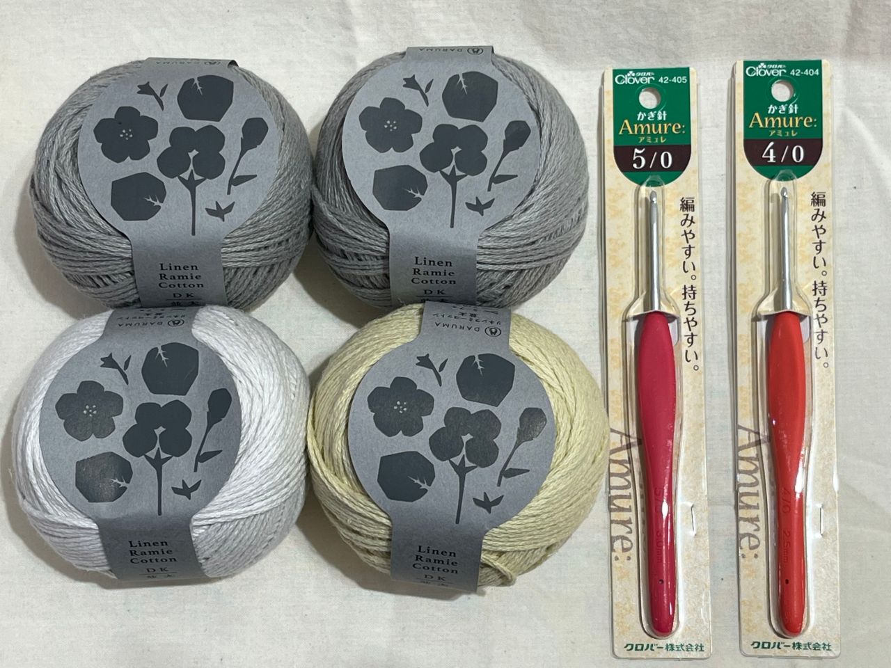 横田のリネンラミーコットン並太4玉とかぎ針5号で編みます