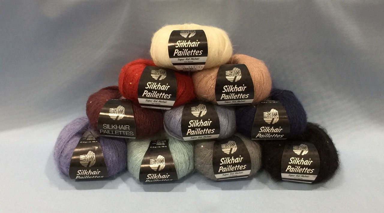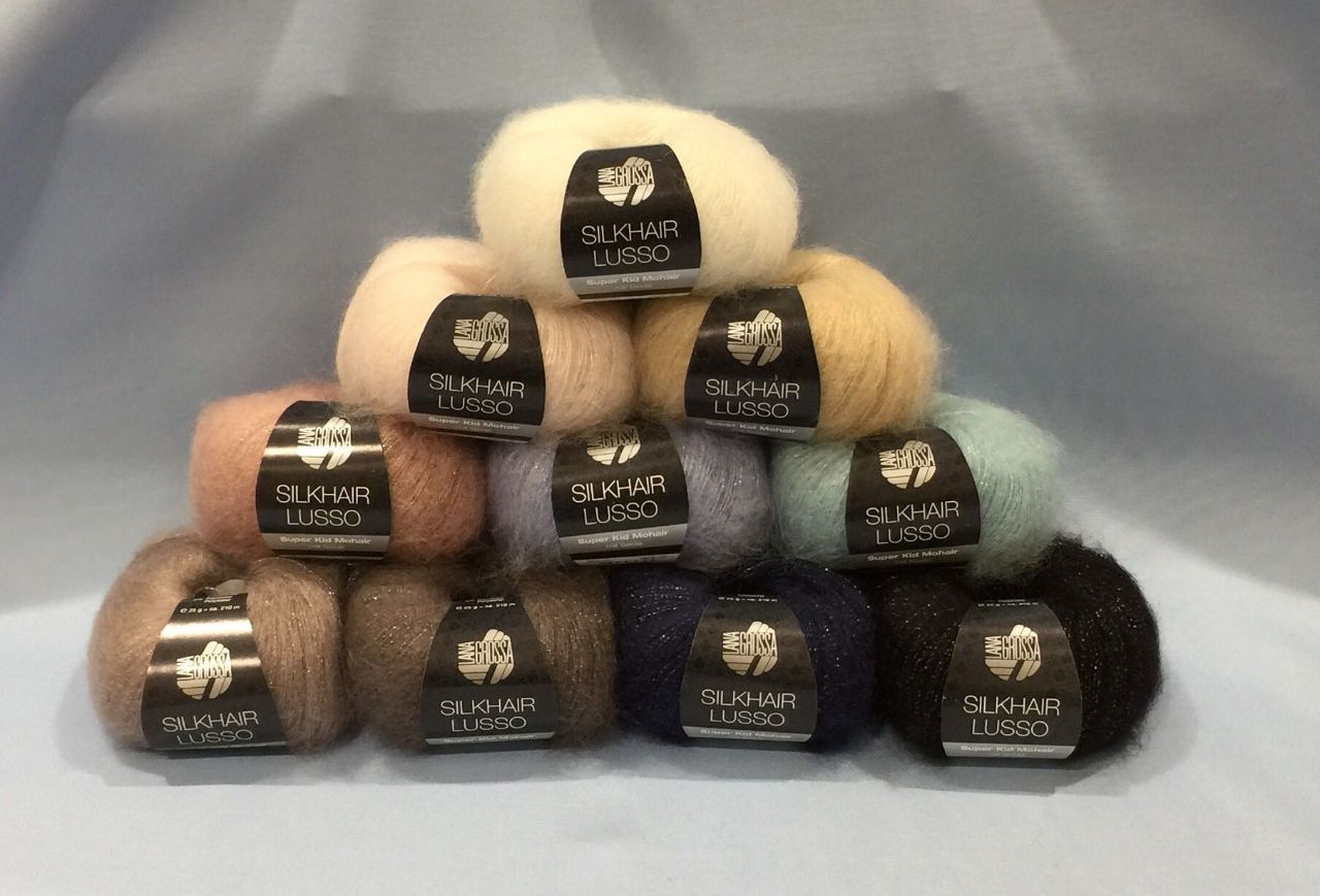 すべてモヘア糸ですが生後3〜6ヶ月のアンゴラ山羊から取ったスーパーキッドモヘアを使っているので、