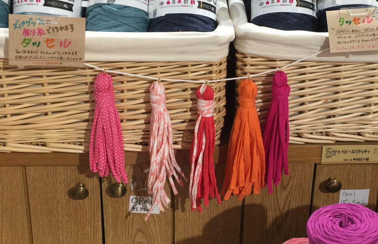 亀有店では5月9日のブログでご紹介したミニポーチの他に、タッセルのサンプルも展示しております。