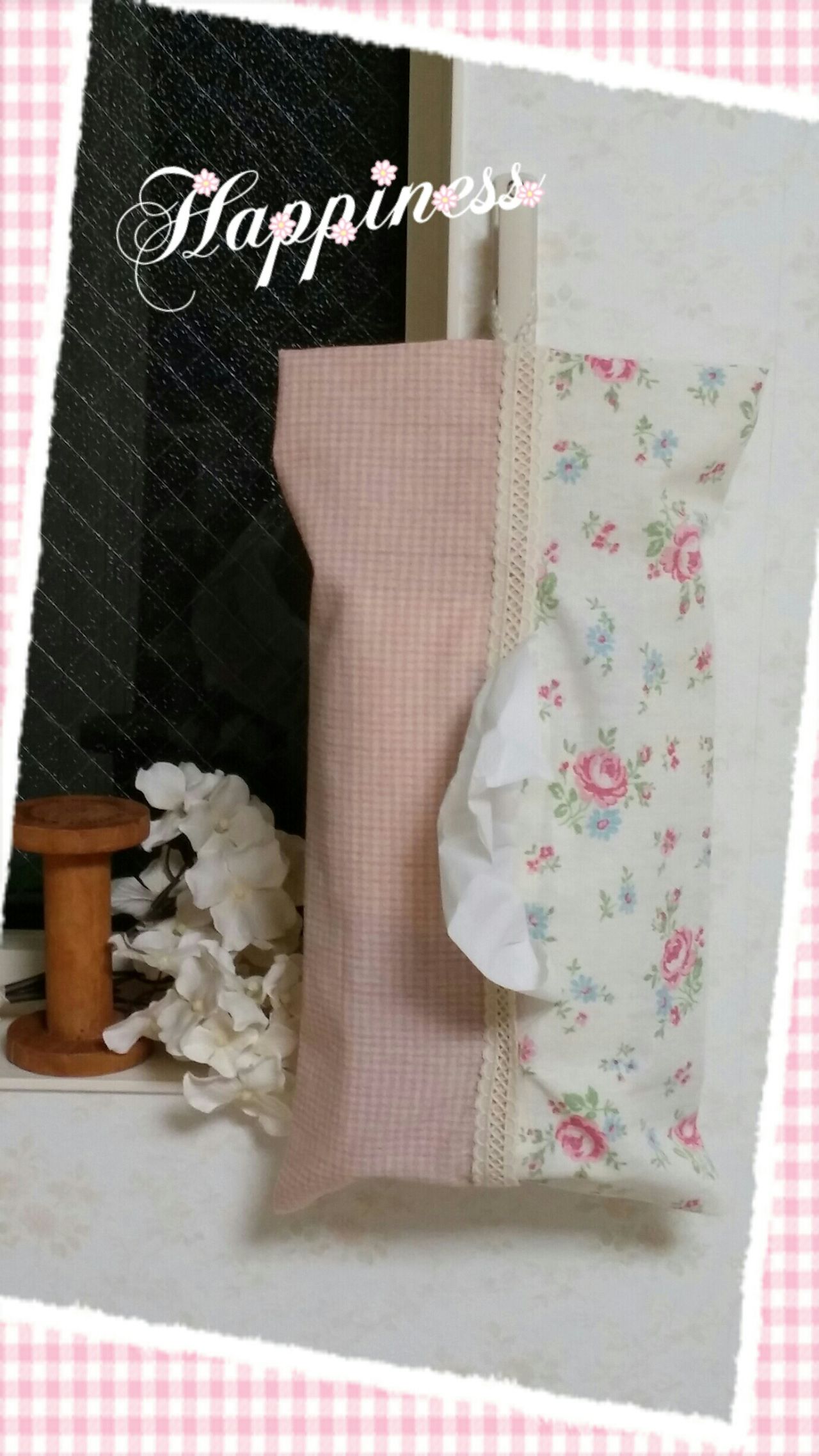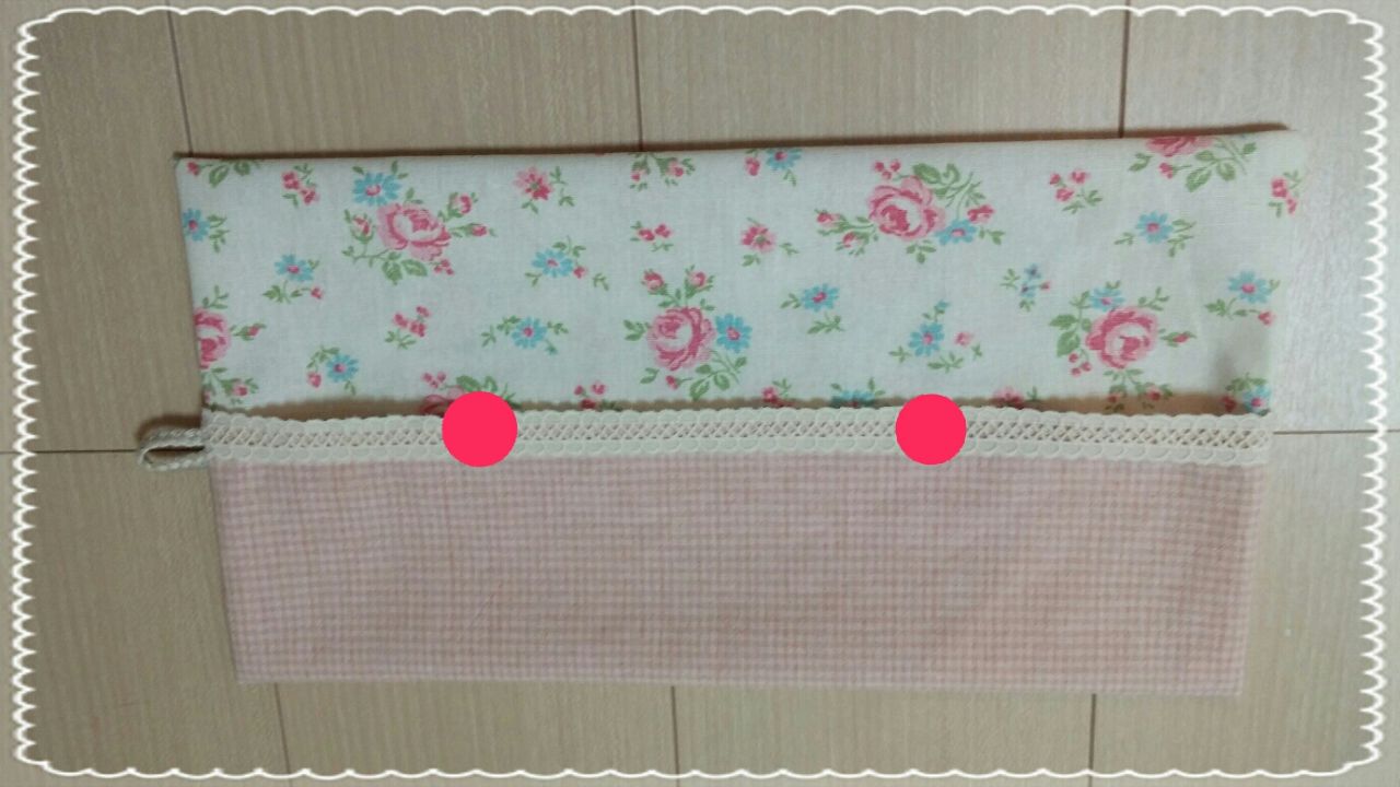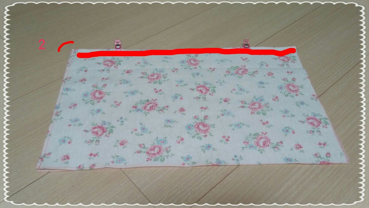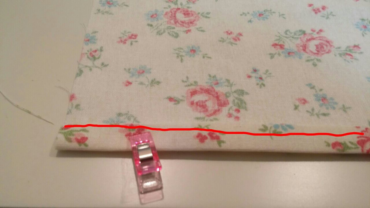 生地を中表に折りたたみティッシュの入れ口は1㎝重ねて赤線部分を縫います。