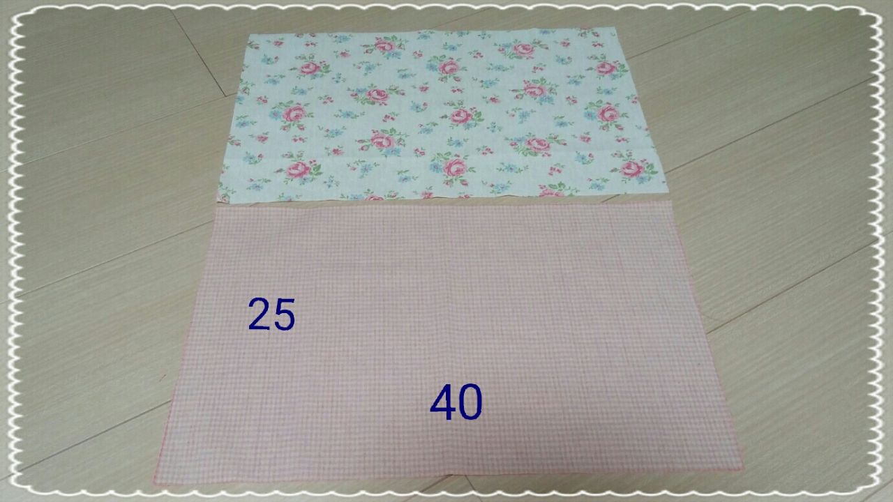 まず2種類の生地を25×40㎝(縫い代2㎝込み)