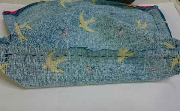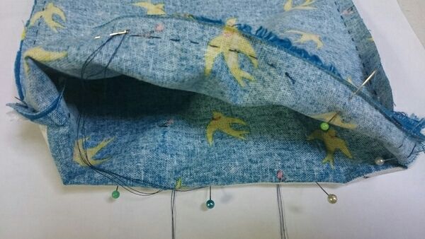 ⑤ 中表になったら口の部分を縫い代1㎝でぐるりと一周縫います