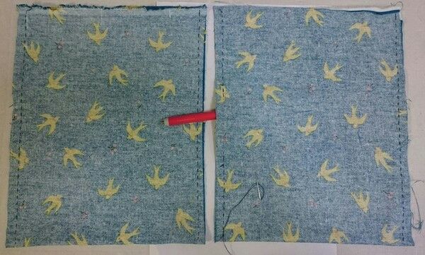 ① 22㎝ × 18.5㎝に生地を二枚カットする