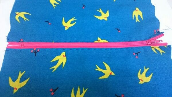 ④ 1.5㎝の折った部分を縫い代にファスナーを縫いつける(両方)