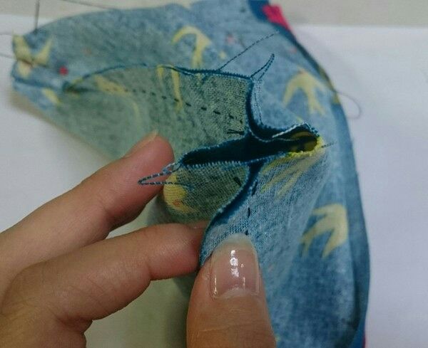 ここで、ひと針分あけると表に返したとき角がキレイにでます☆