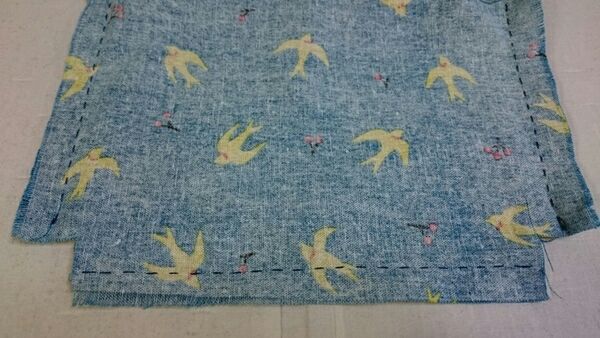 ② それぞれ中表にして脇を縫う(縫い代1㎝)
