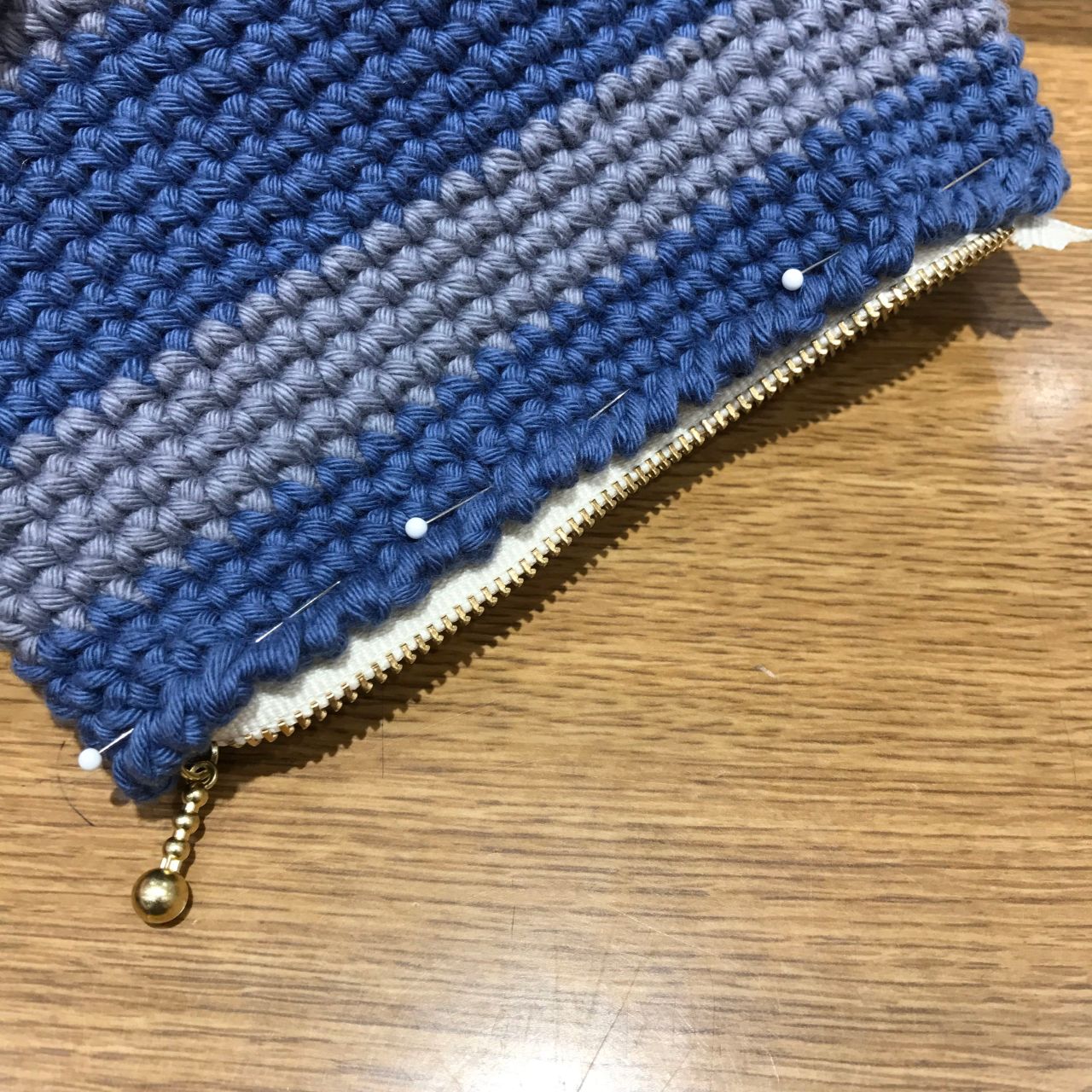 ⑥ファスナーを縫い糸で返し縫いをしながらつけたら完成!!