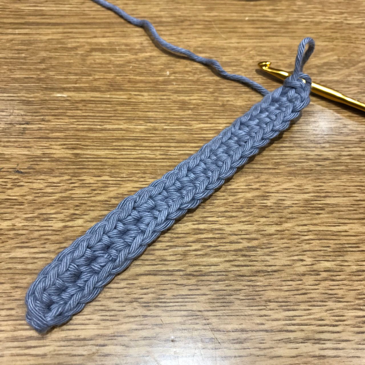 ①まず鎖編みで作り目を20目つくる