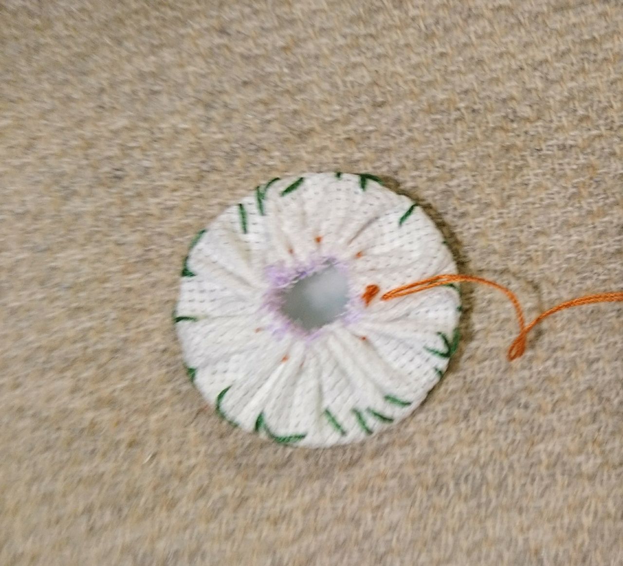 カットした内側5ミリ位のところを一周ぐし縫いします。