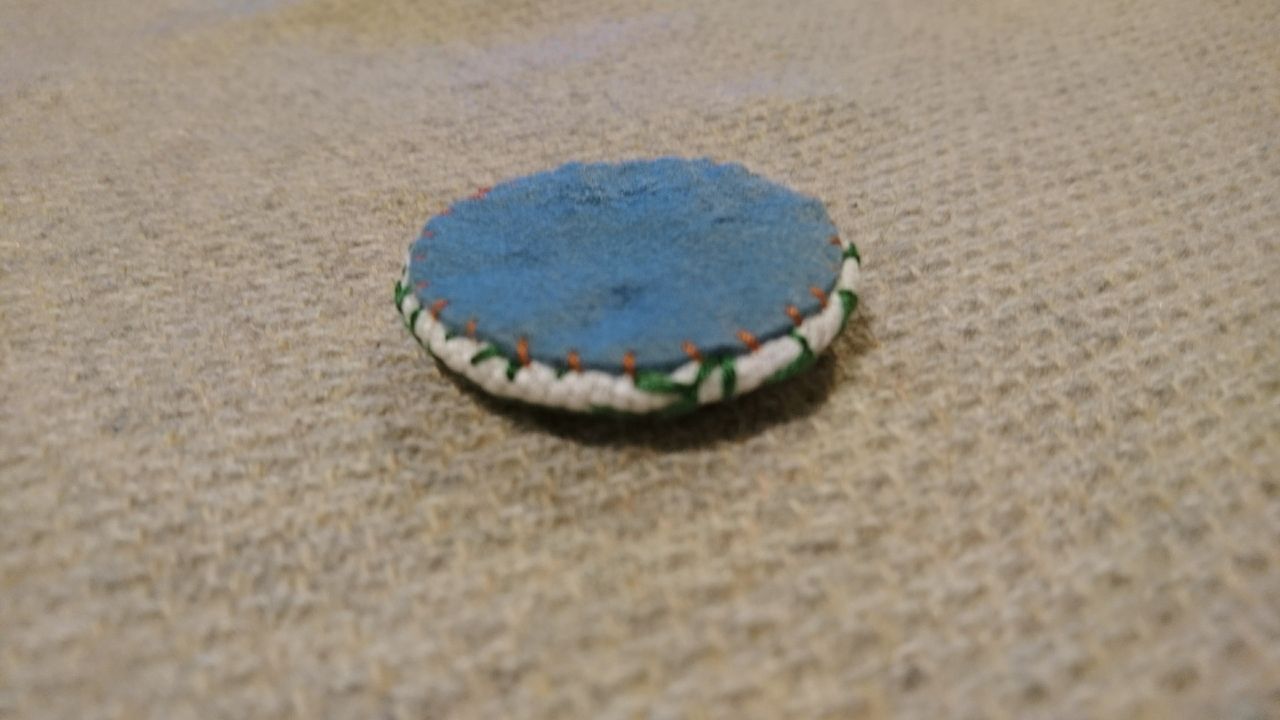 カットしたフェルトを包みボタンに縫い付けます。