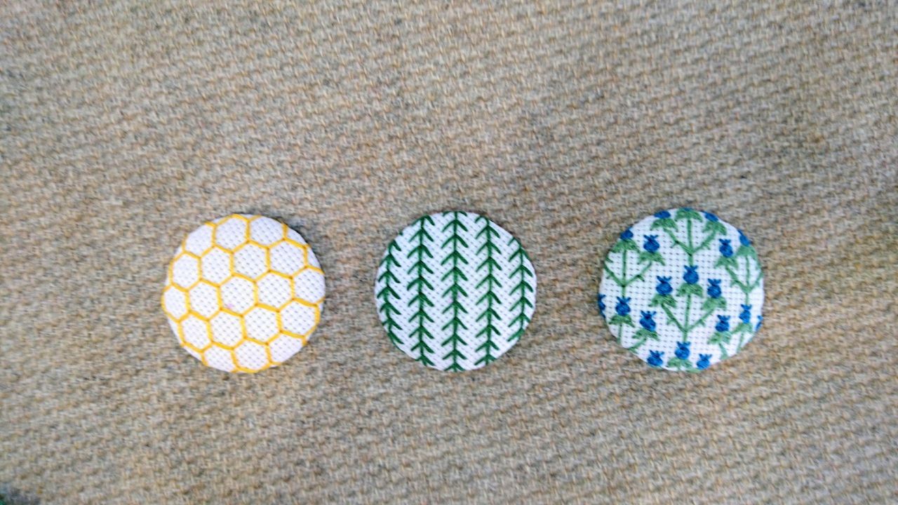 癒しの地刺し包みボタン