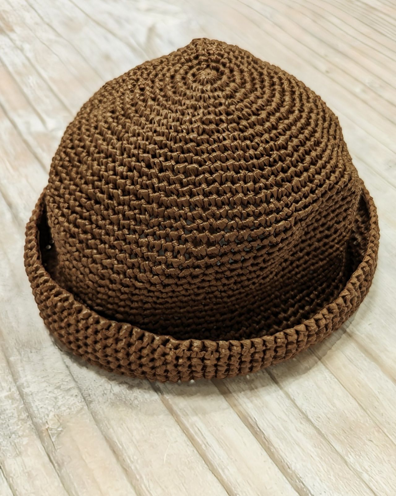 日射しから身を守る帽子(子ども用)を編んでみました。