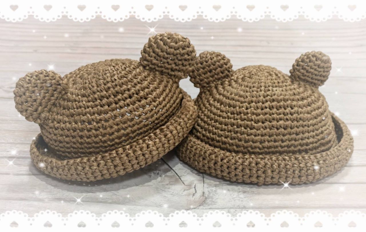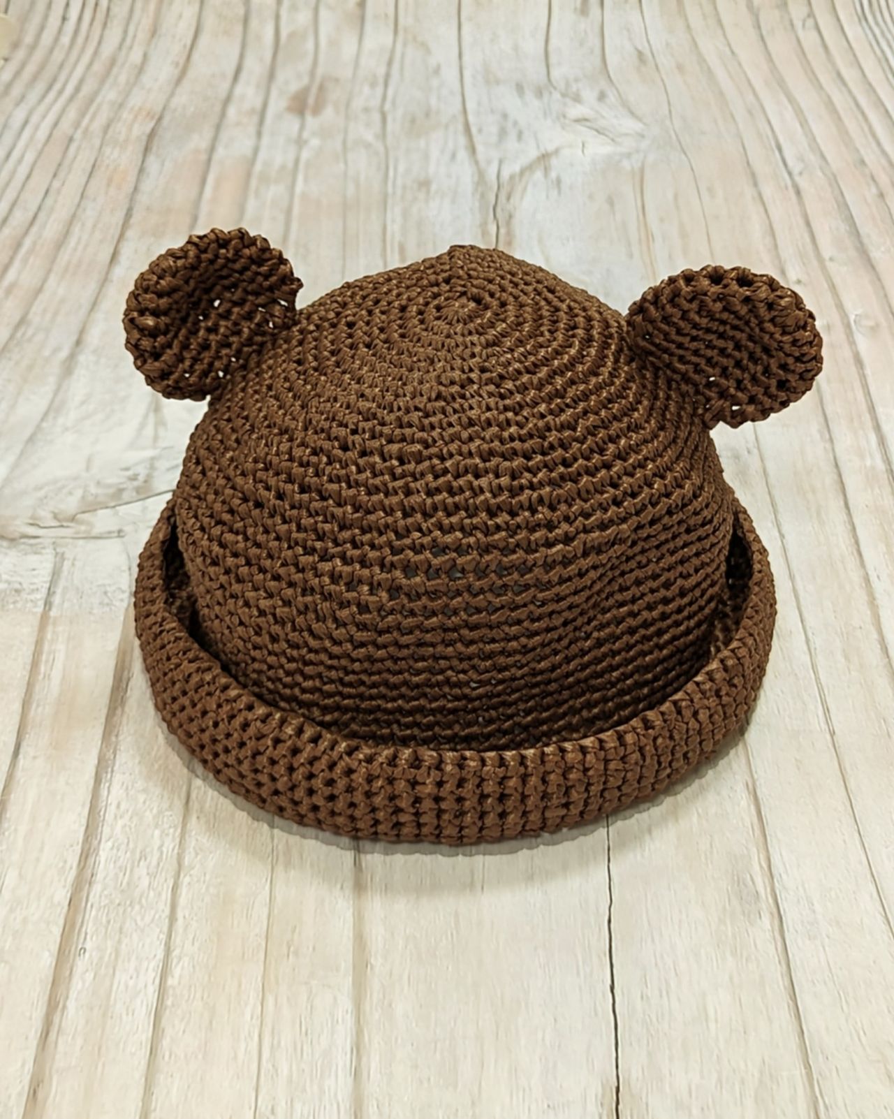 エコアンダリヤでくまさん帽子(こども)を編んでみた