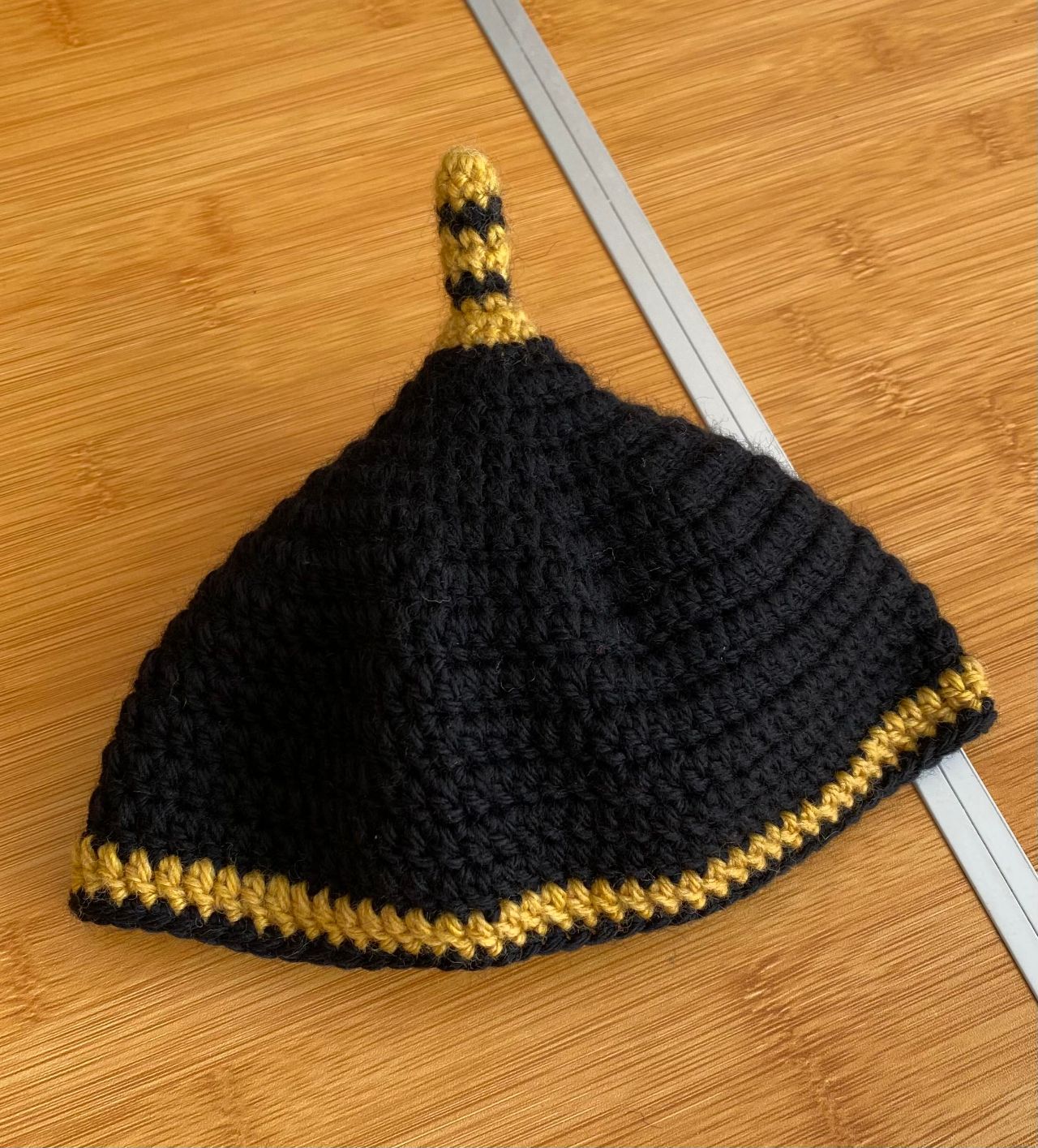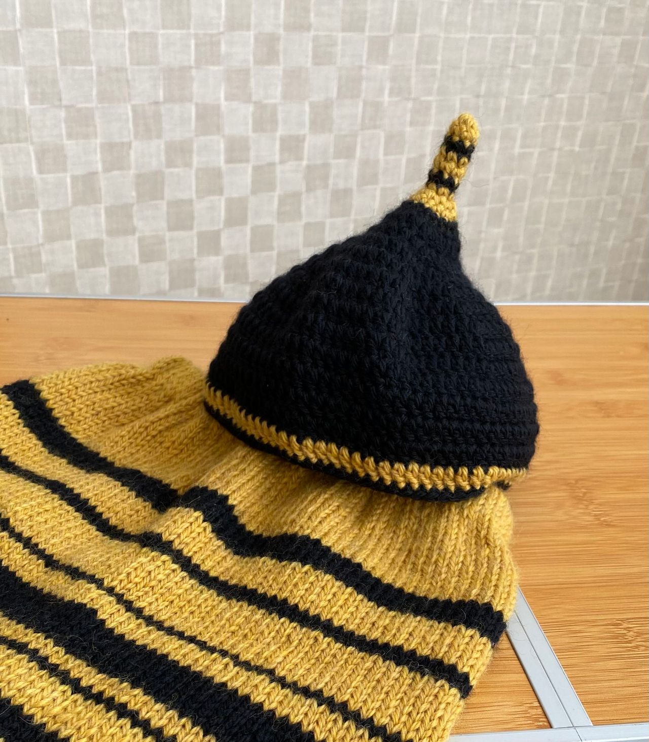 こちらの鬼ふう?とんがり帽子はサンプル展示のみとなりますが、「アニマルとんがり帽子」の編み図は