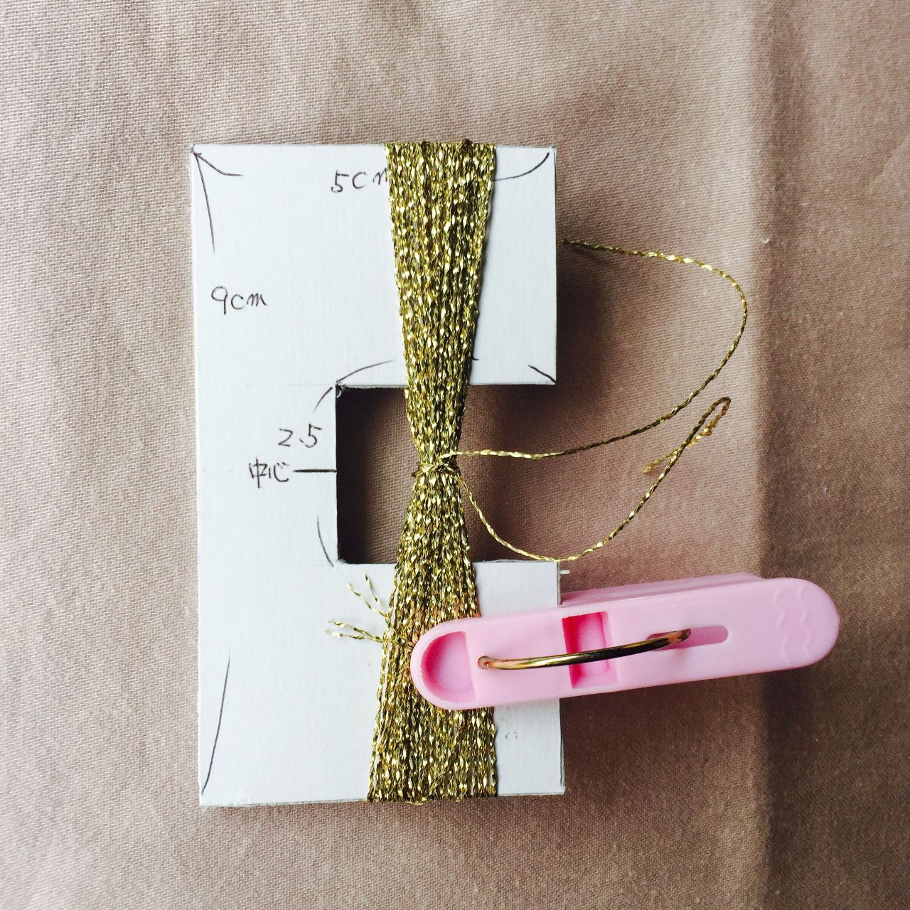 台紙に刺繍糸を、25回巻き付けます。