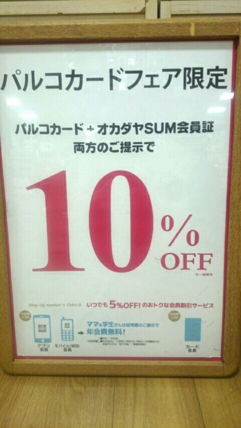 オカダヤ会員証とPARCOカードのご利用で全品10%引きでお買い物頂けます。