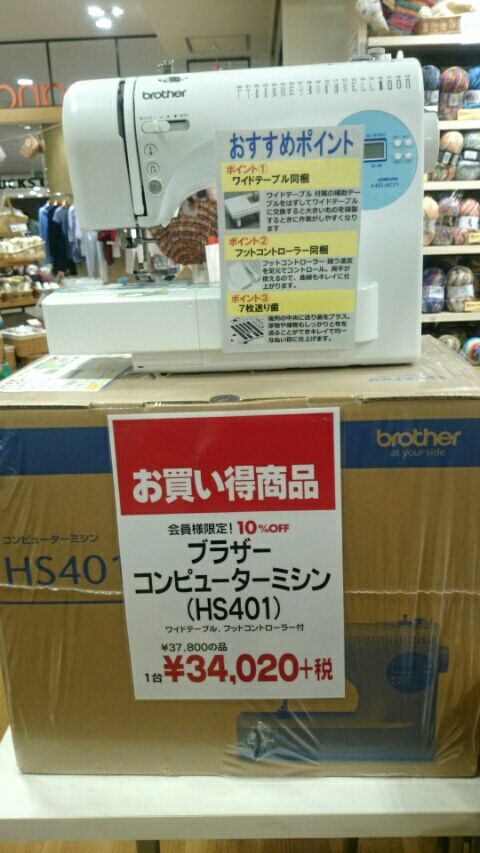 ミシンもPARCOカードでお買い求め頂きますと引き落としの際5%~10%引きになるのでお得です(^^)