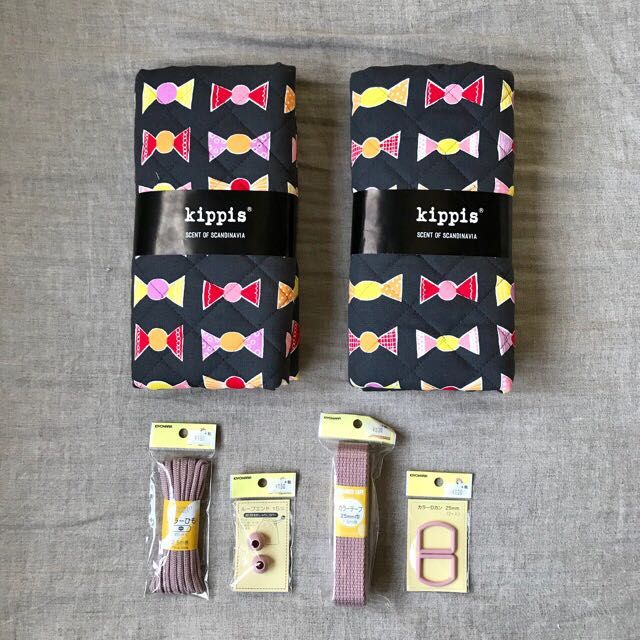 そこで、毎年人気のkippis(キッピス)のキルティング着分を使用して、レッスンバッグ、うわばき入れ、体操着袋の3点を作ってみました♪