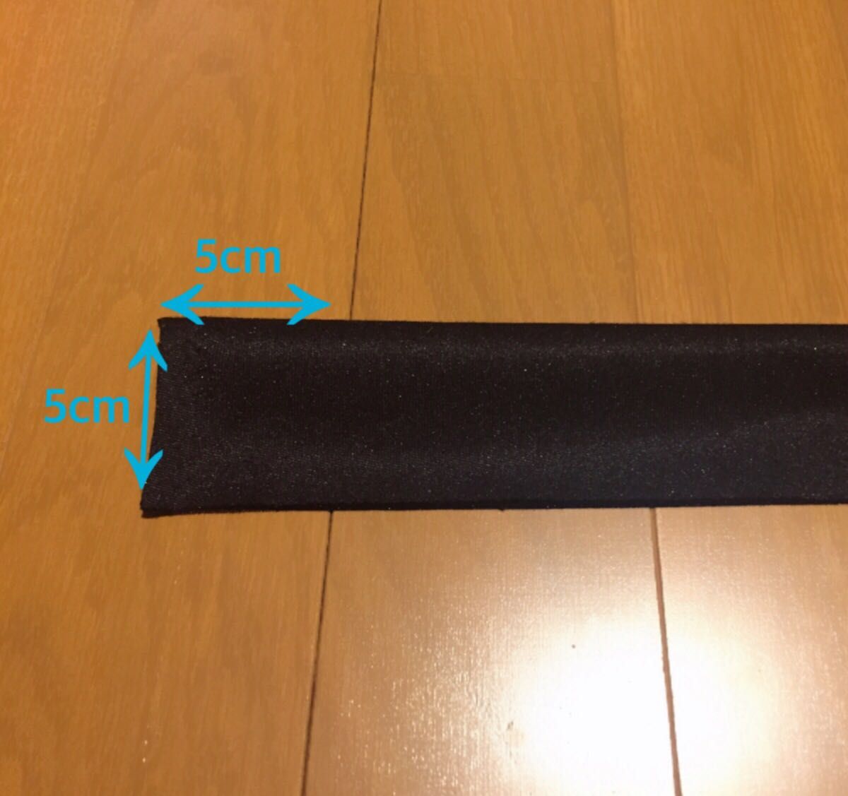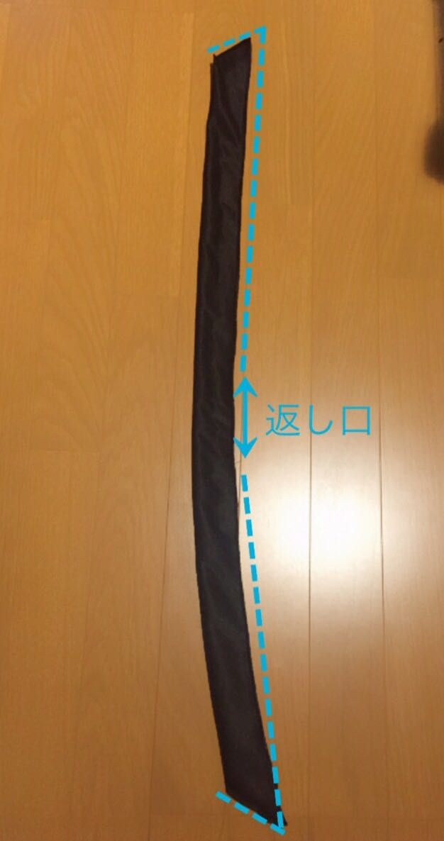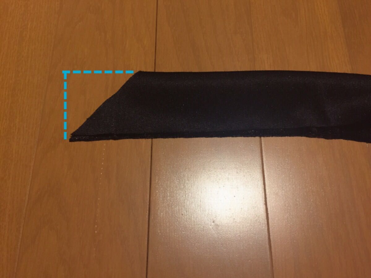 ④中表に折りたたんだまま、返し口10cm程度を残して----の辺を縫います(縫い代1cm)