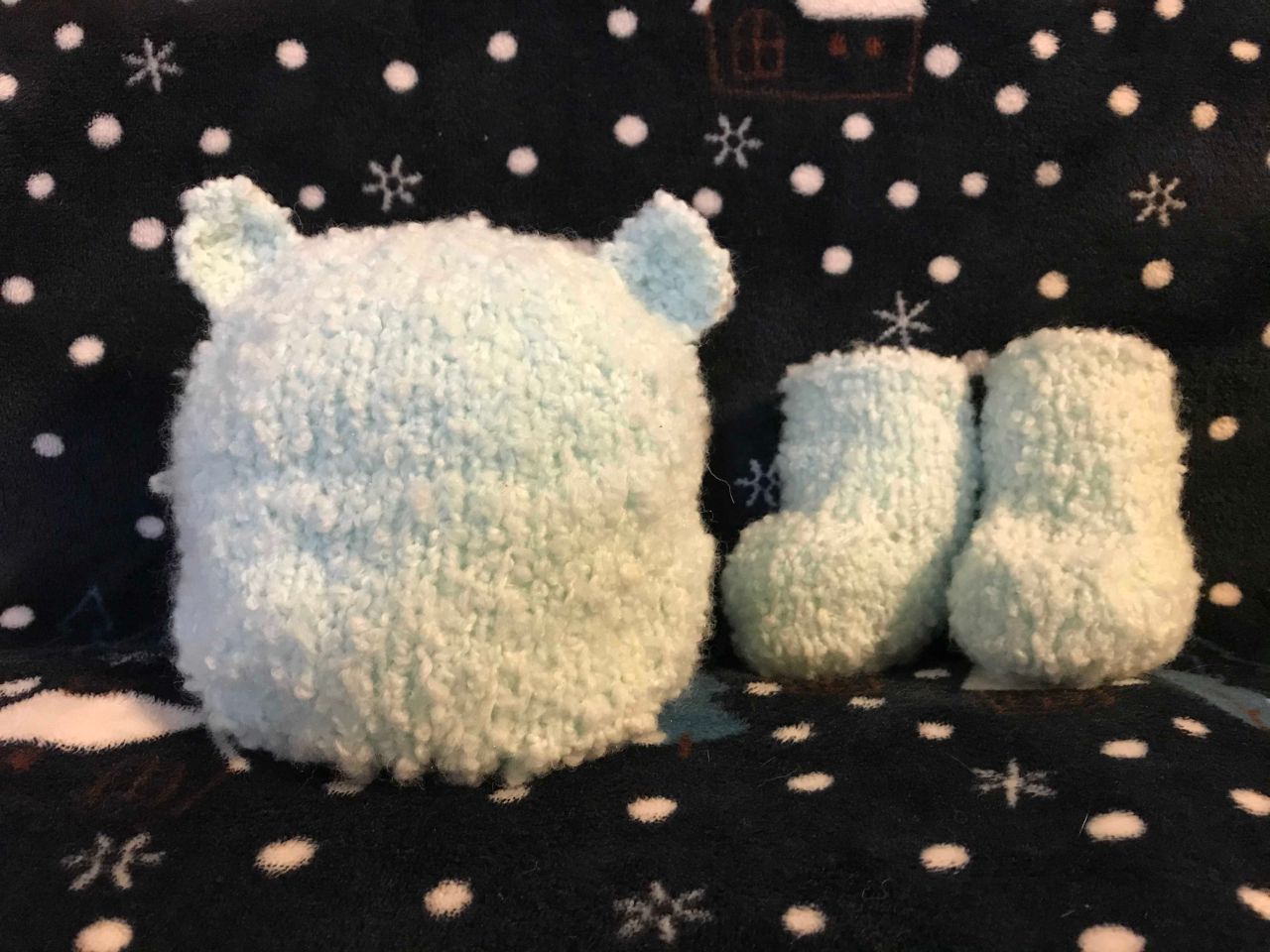 *キャップとブーティの編み図を「ブークレット」お買い上げの方に差し上げております。