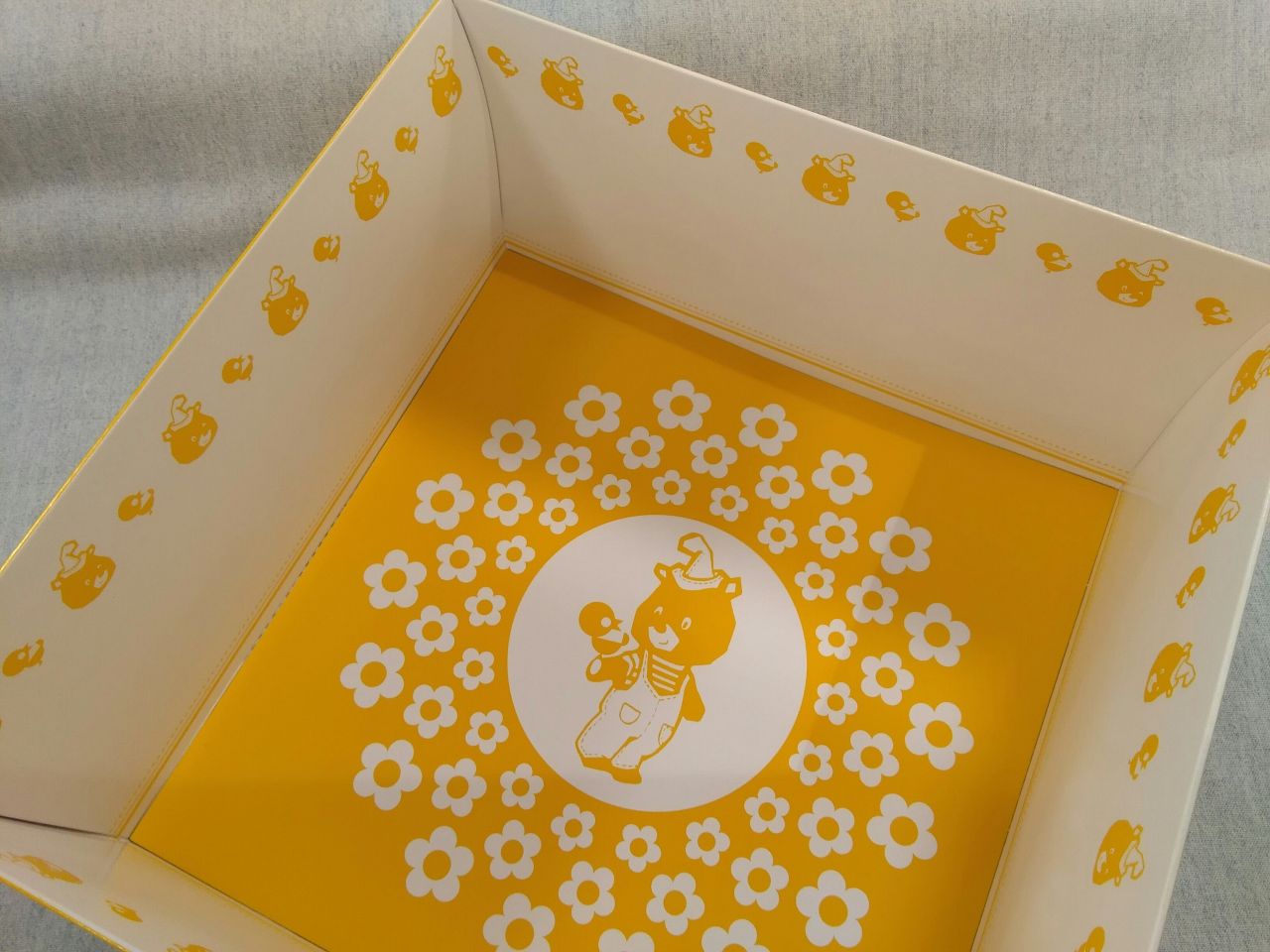 箱は厚紙製。カラーは三色(黄・ピンク・エメラルドグリーン)。