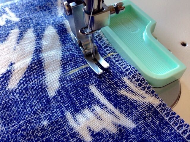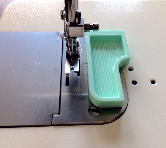 布端をガイドに沿わせて縫います。これで1cm内側が縫われる事になります。