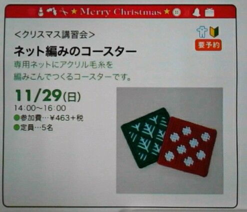 クリスマスのてづくり講習会も募集中!