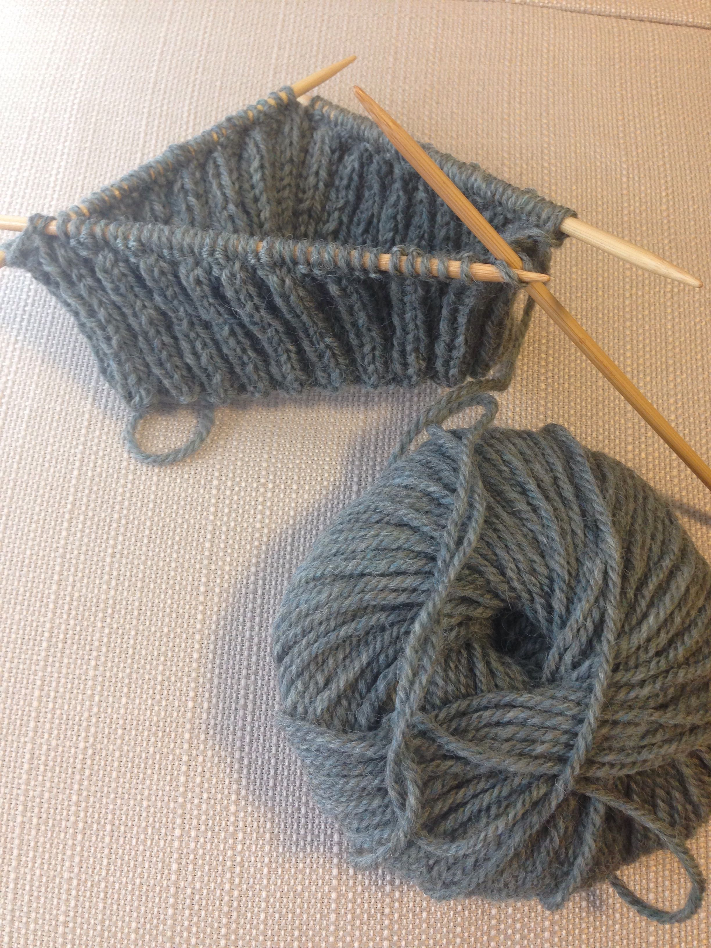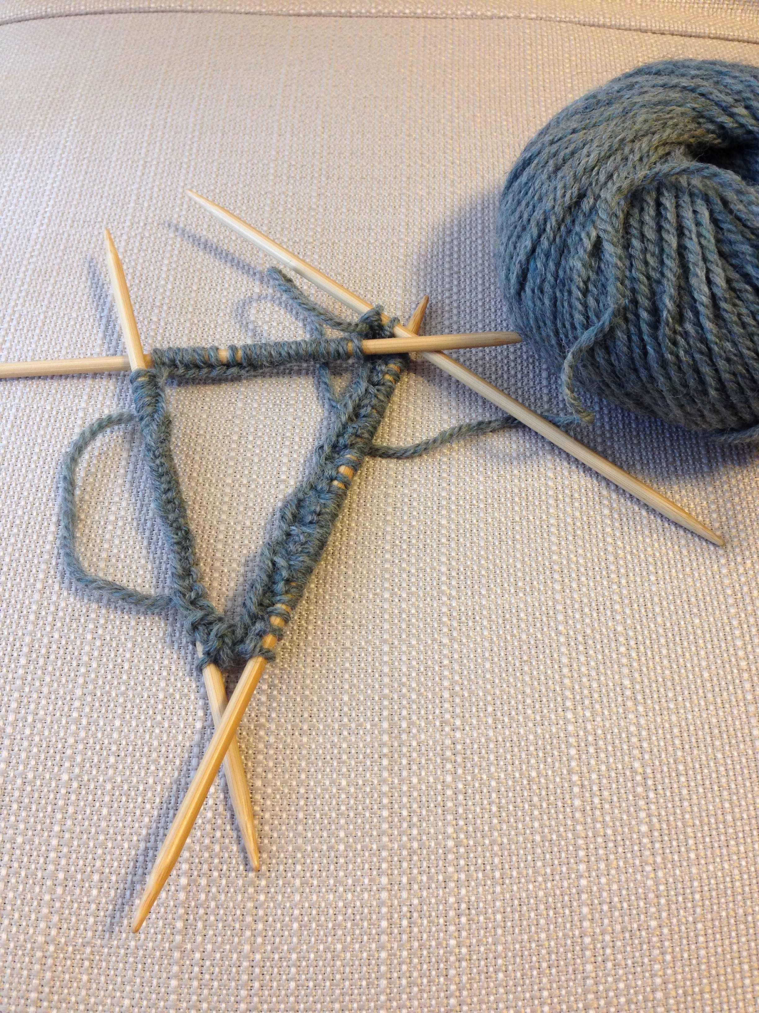 編み図には、2本針で平らに編んで最後に脇をはぐやり方ですが、画像では4本