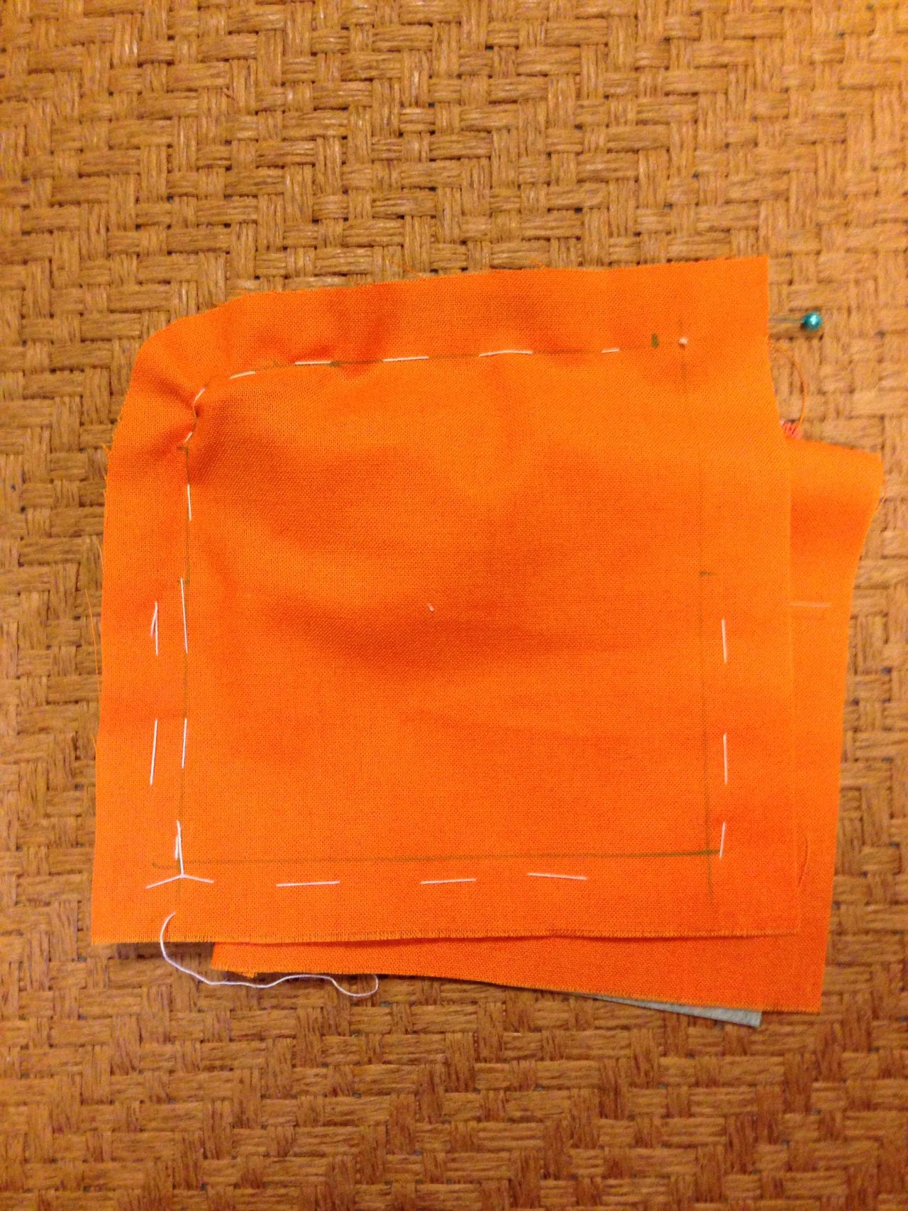 表布2枚の裏に、接着芯をアイロンで貼ります。(厚地の生地を使用の場合は、貼らなくてもいいと思います)