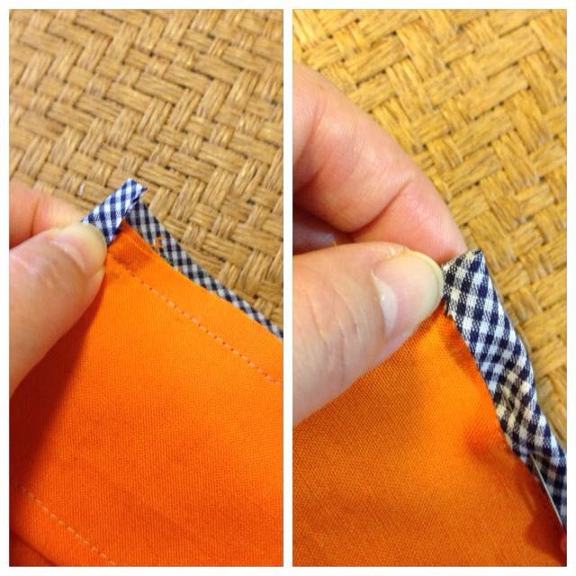 縫い代をバイアステープでしつけをしてから、ミシンで縫います。
