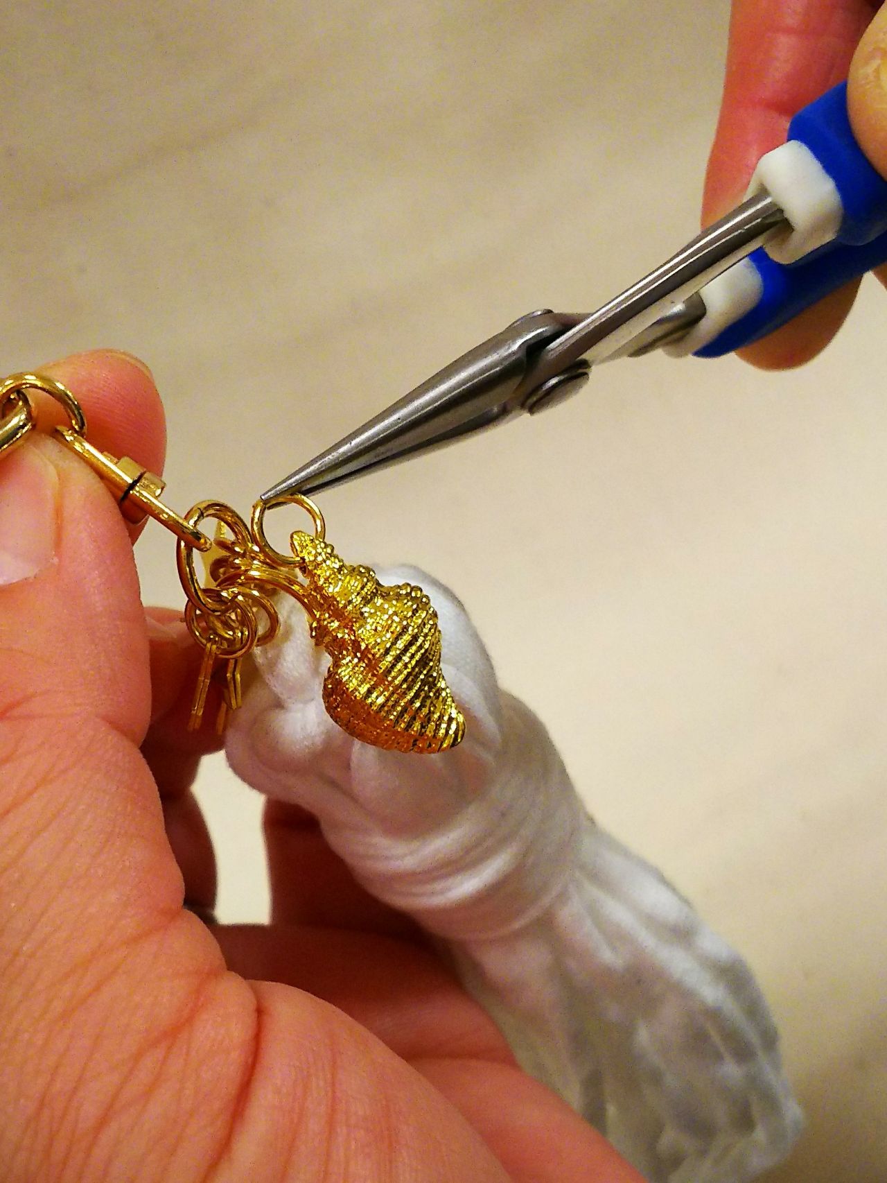 キーホルダーと、チャームを取り付けたら、あっという間に出来上がります。