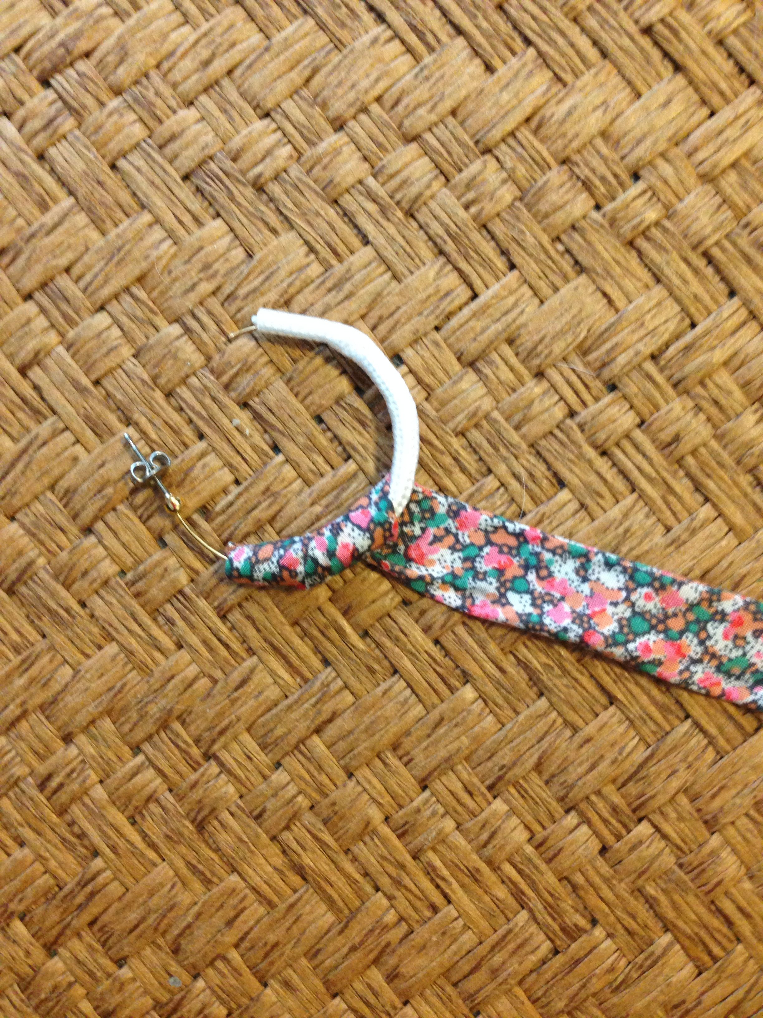 フープピアス金具にリバティバイアスを巻きつけて作った、簡単で可愛いピアスです。