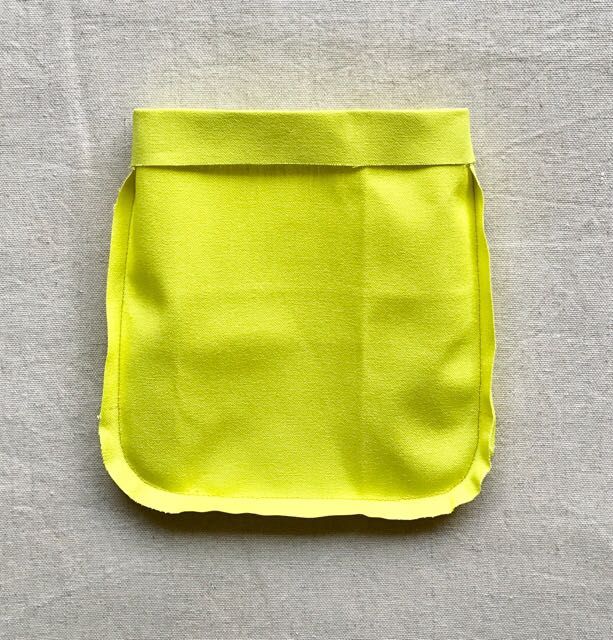 裏布はそのままで、上端を2.5cm裏側に折ります。