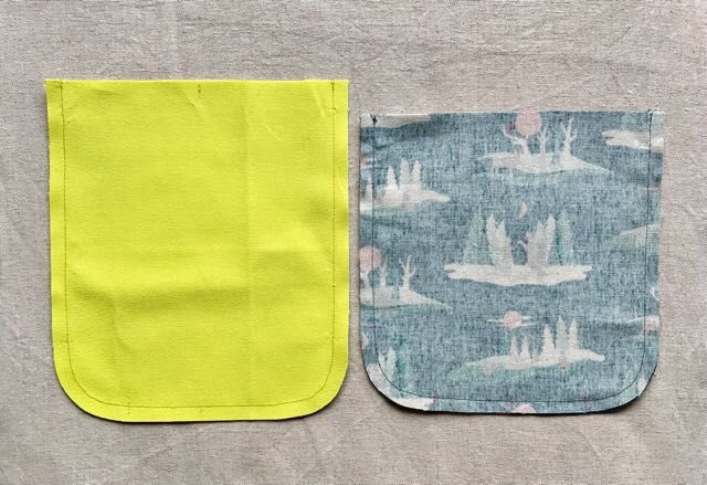 ②表布、裏布をそれぞれ中表に合わせて周囲を縫い合わせます。縫い代は1cmです。