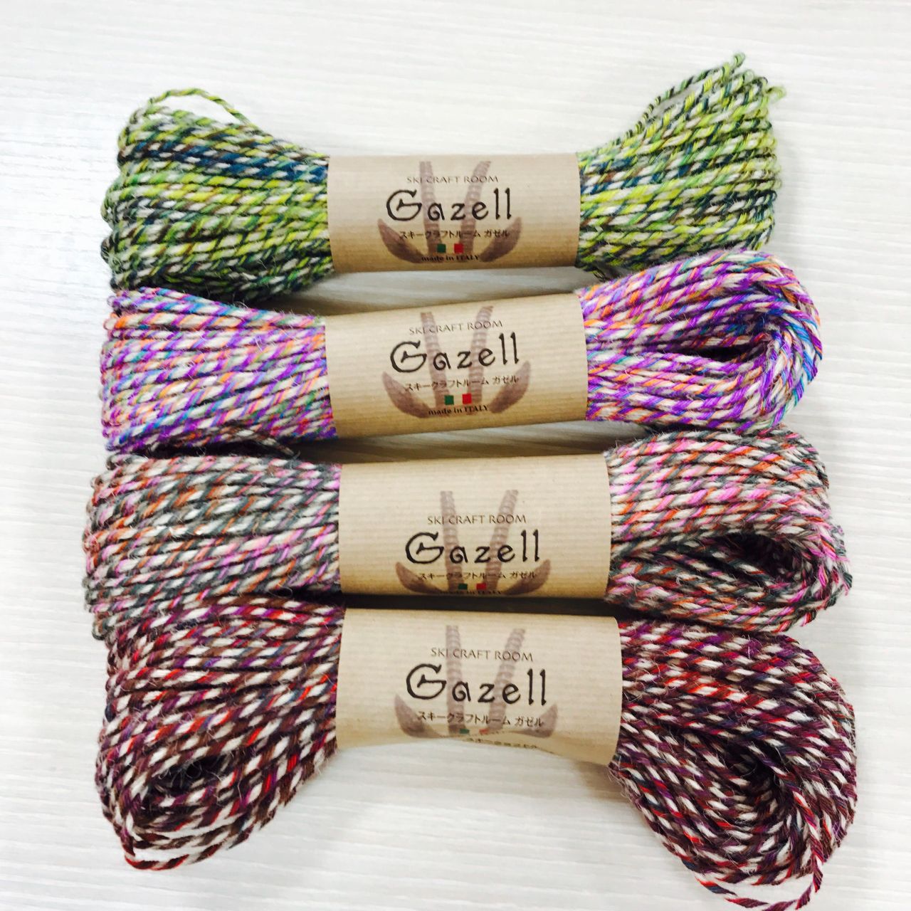 秘密は太い麻糸にカラフルな段染め糸をまきつけて作られている糸なんです!