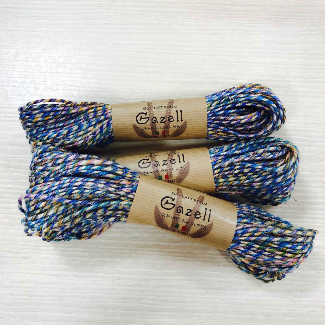 1本の麻糸で編んでいるのですが、何本ものいろんな色の糸を使って編んだみたいな糸ですよね(o^^o)