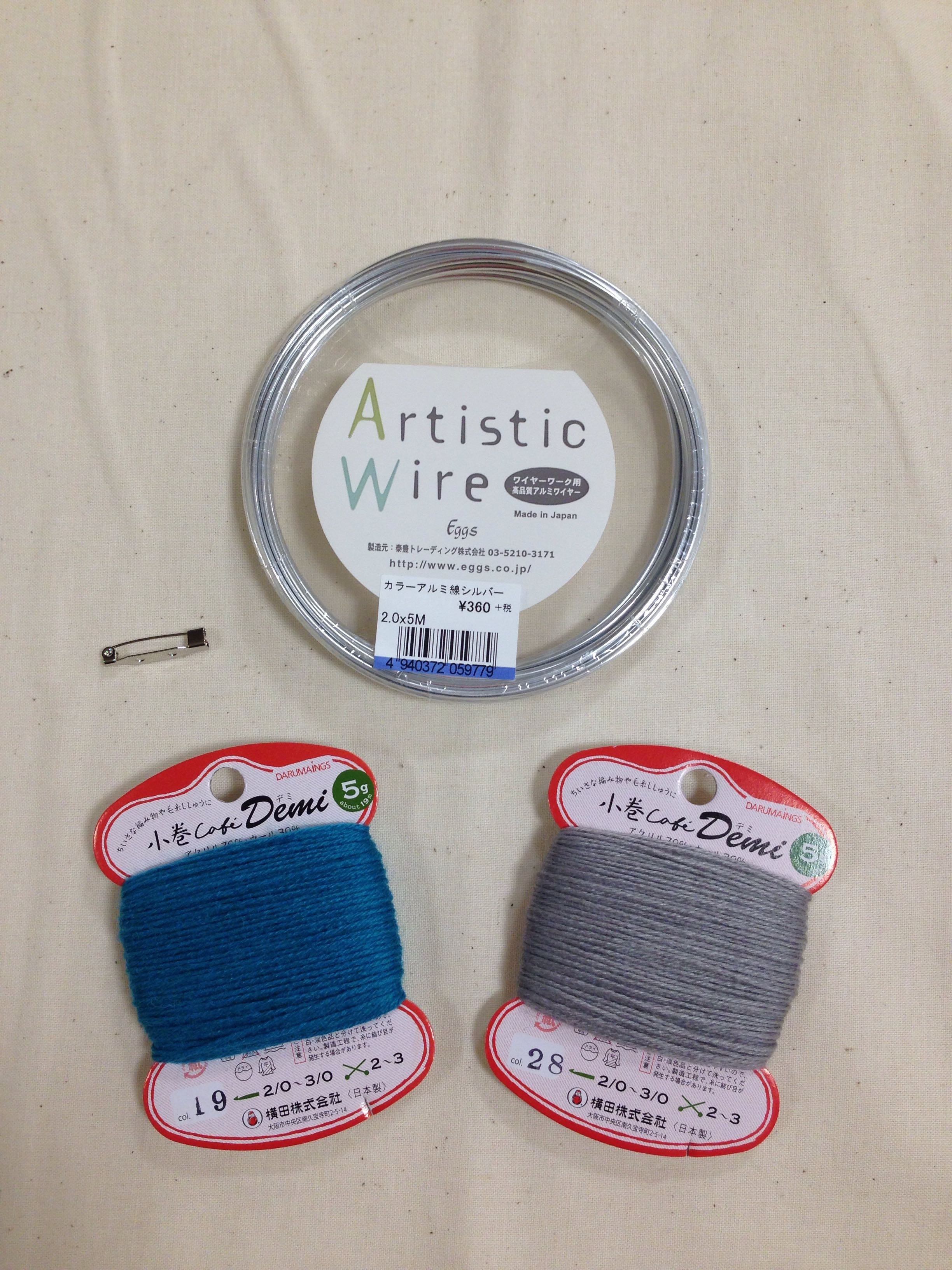 今回の手づくりは、ワイヤーを毛糸で編みつけて作る、ちょうちょのブローチです。
