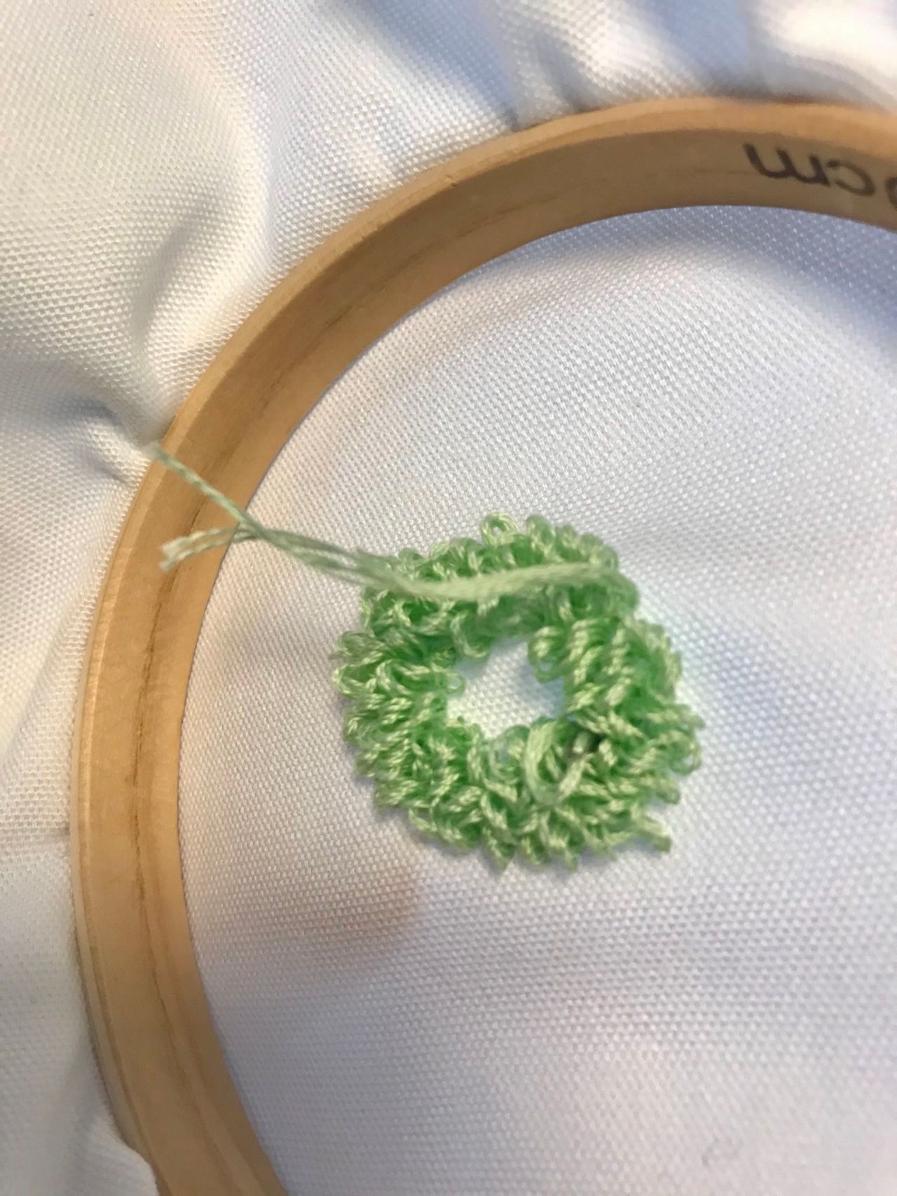 輪郭が刺せたら、内側へ向かってぐるぐると刺し埋めていきます。