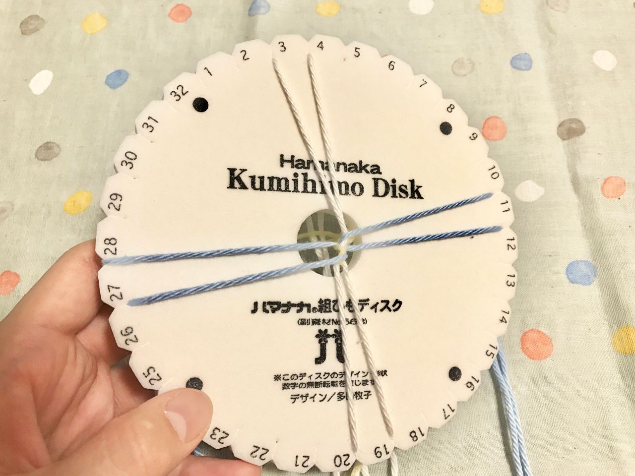 スターターセットと一緒に、組みひもディスクを使って毛糸を編んでいきます。