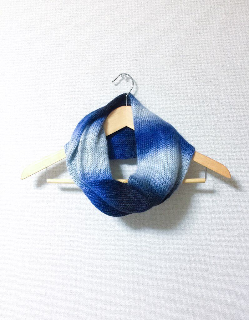 2本針で輪に編める、袋編みのスヌードのサンプルをご用意しています。