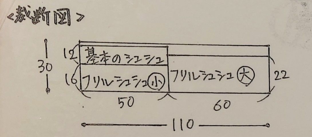 30cmでスタンダードのシュシュが1つと、3段フリルの可愛いシュシュが2つも作れちゃいます♡