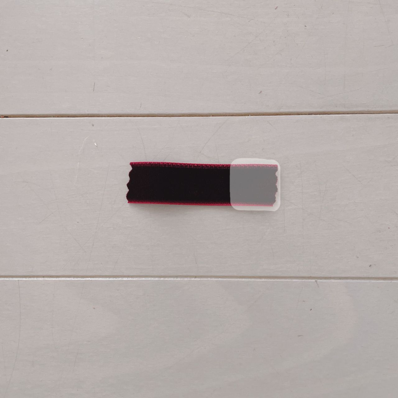 短く切った方のリボン端、1〜1.5cmのところまで裁ほう上手を塗り広げます。