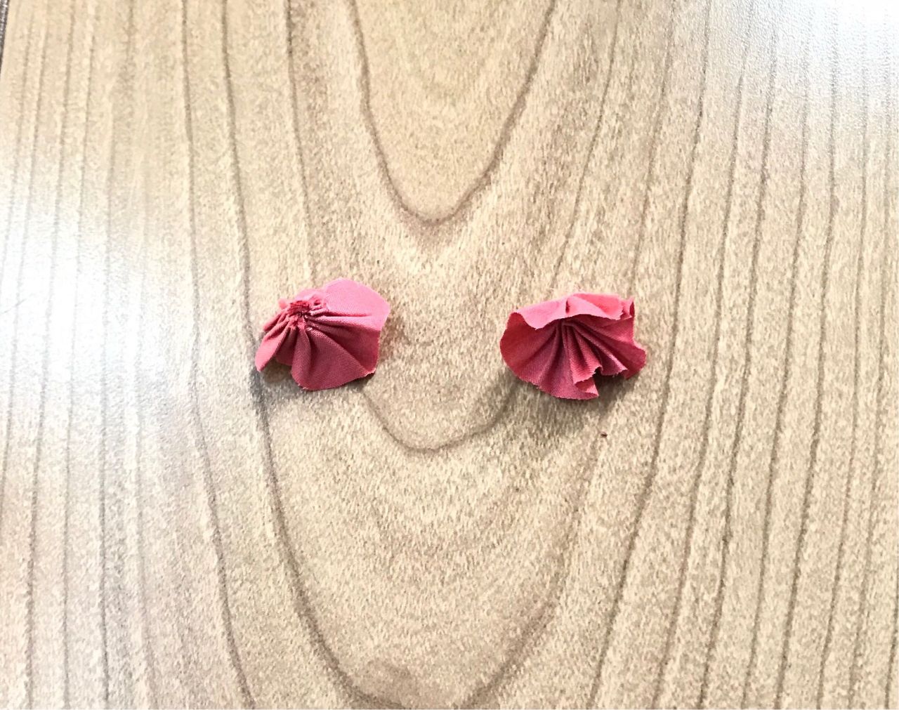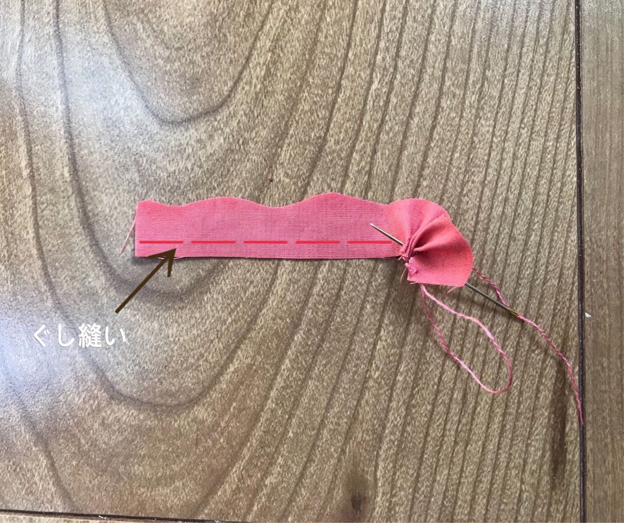 最後までぐし縫いしたら糸をひっぱり生地を寄せる。