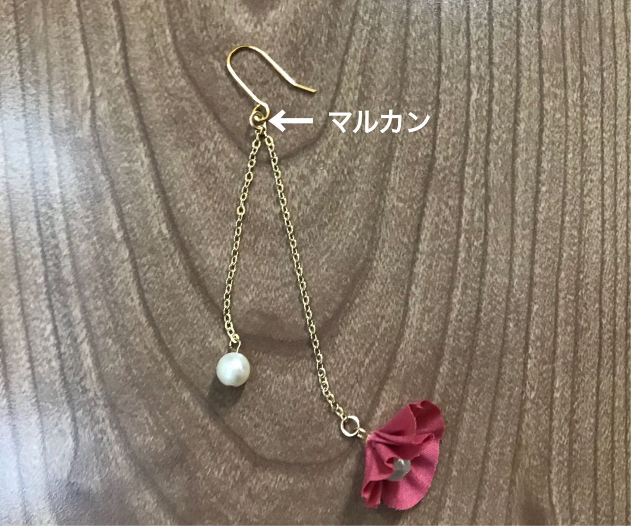 それぞれのチェーンをピアスパーツにマルカンでつなげます。