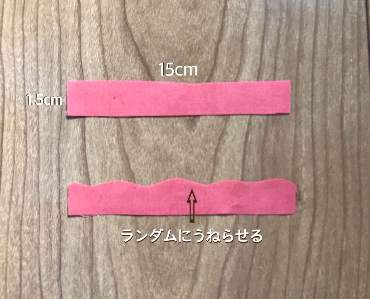 上の写真のようにどちらかの辺をランダムにうねらせてカットする(2枚とも)。