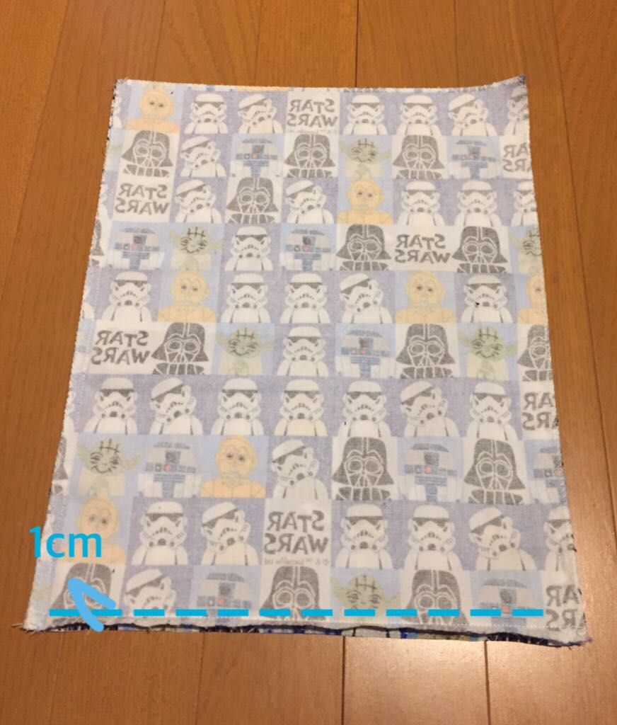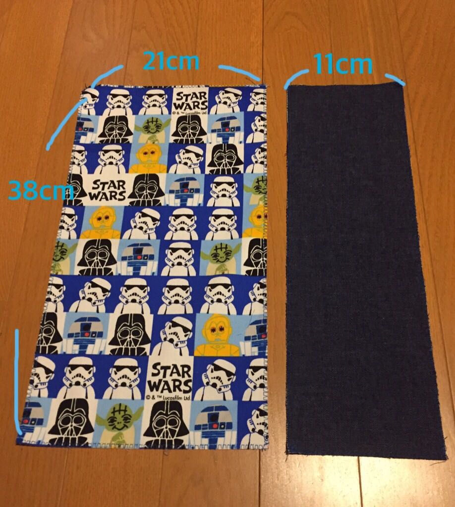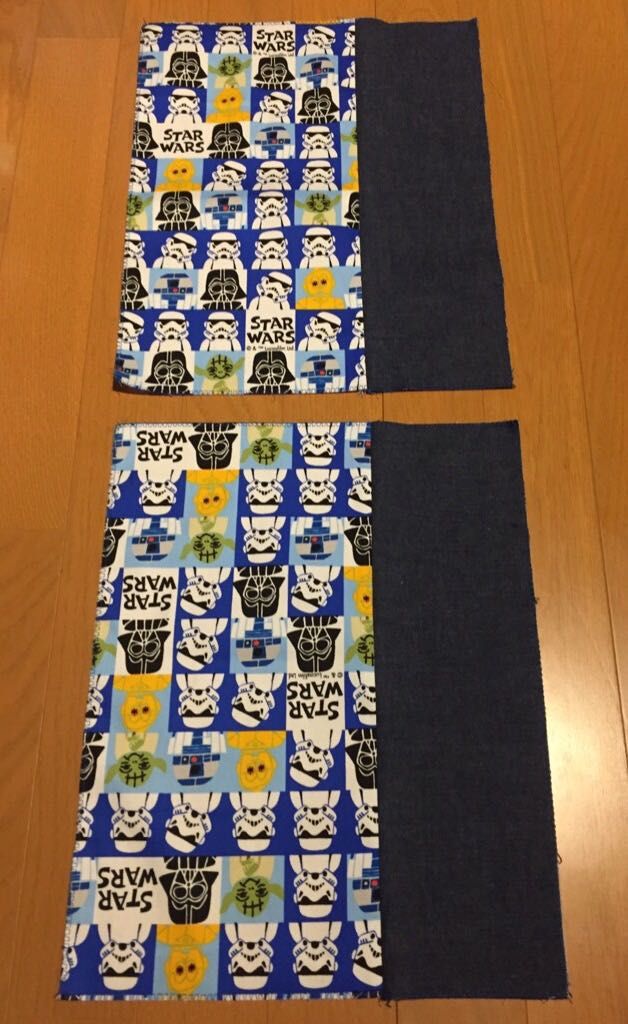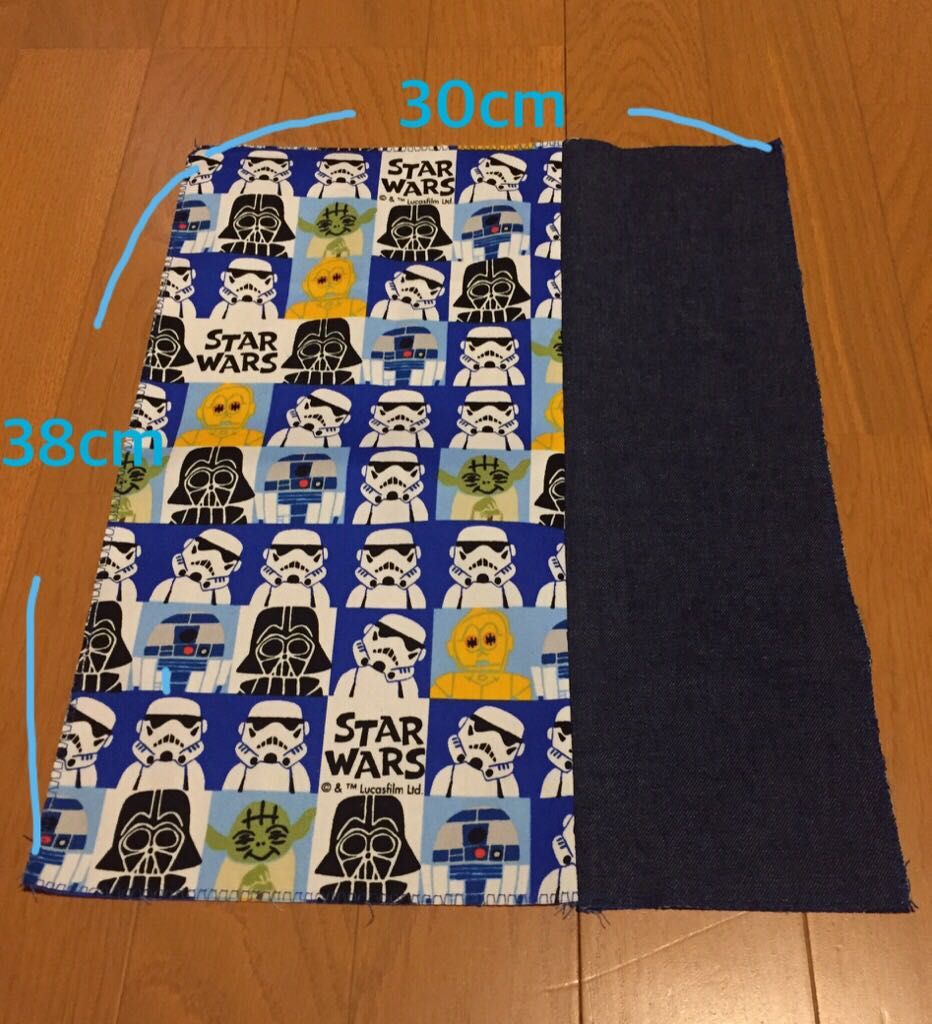 縦38cm×横30cmを2枚用意し、布端をジグザグミシンorロックミシンで処理します。